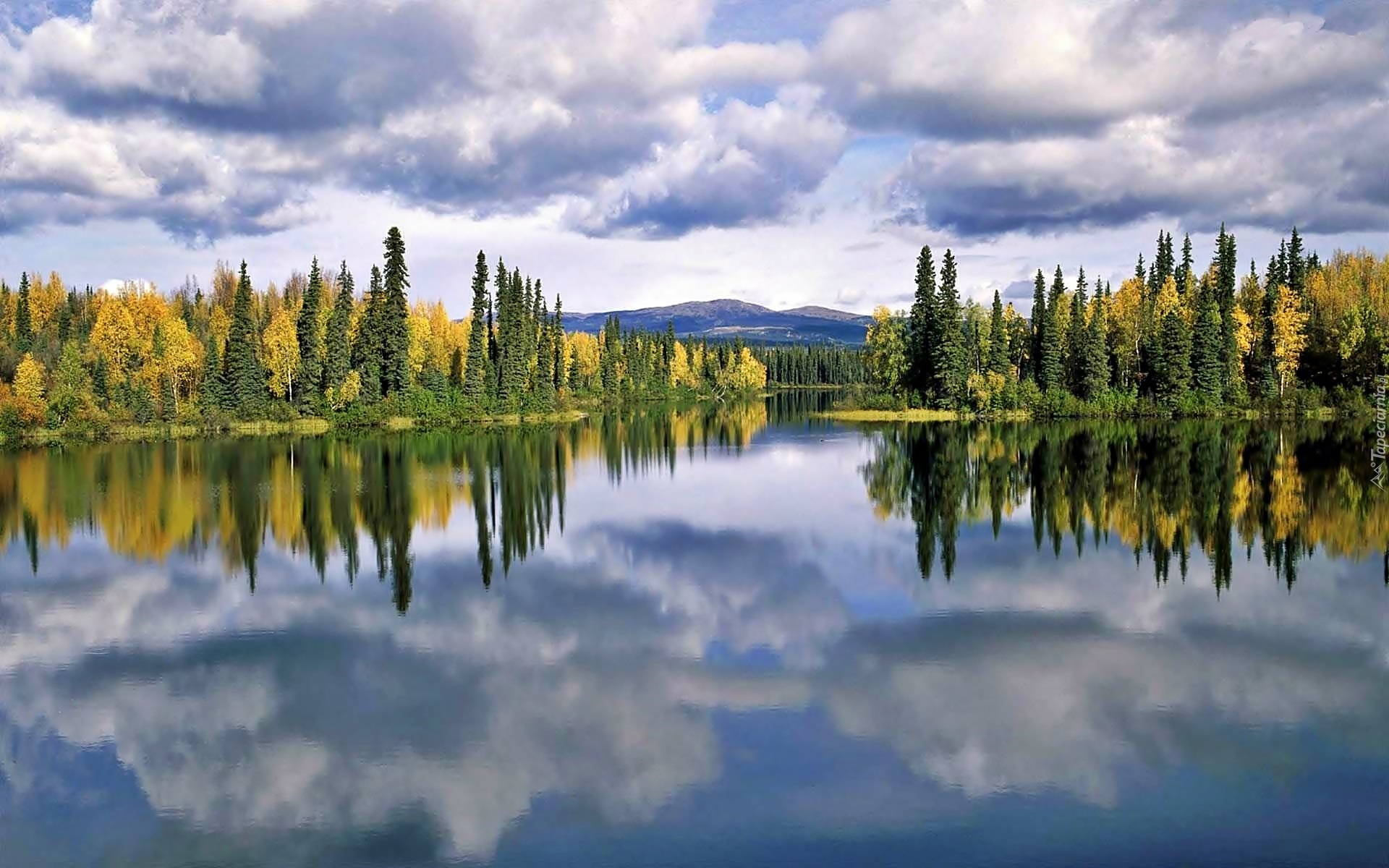 Edytor tapety: Jezioro, Las, Chmury, Jesień
