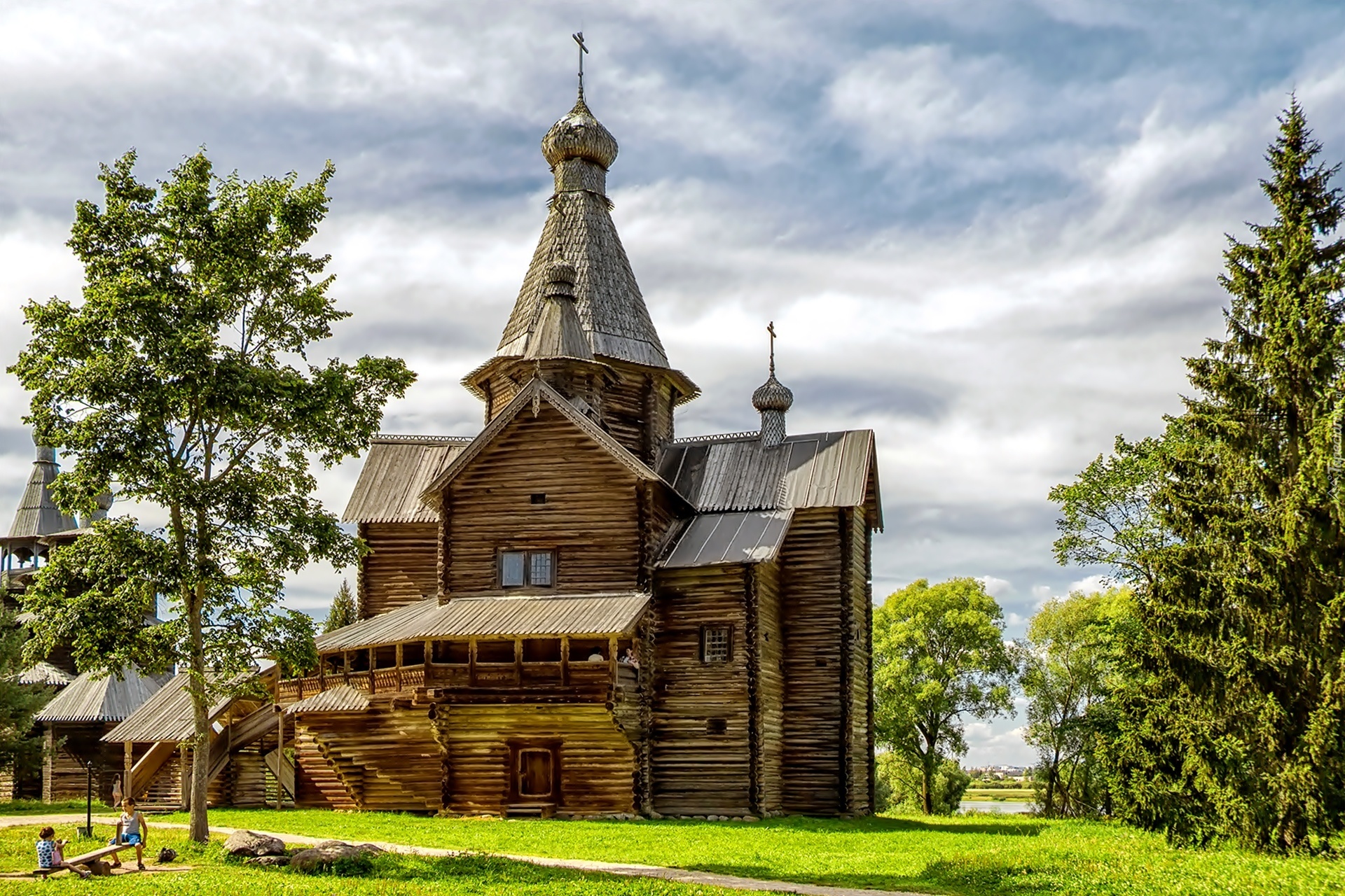 Edytor tapety: Drewniany, Kościół, Drzewa, Chmury, Dzieci, Huśtawka