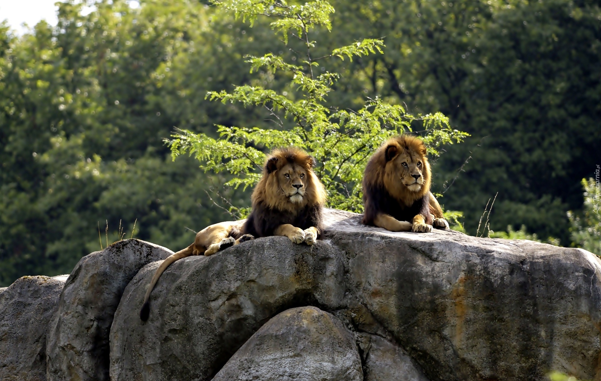 Edytor tapety: Dwa, Lwy, Las, Skały