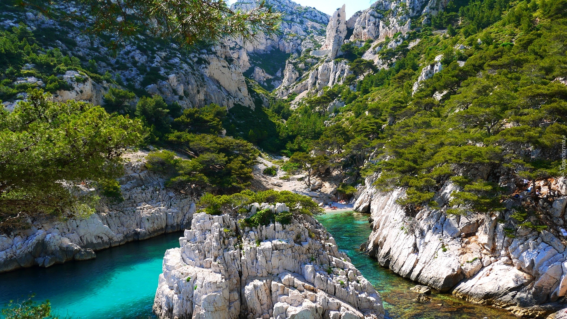Edytor tapety: Góry, Las, Zatoka