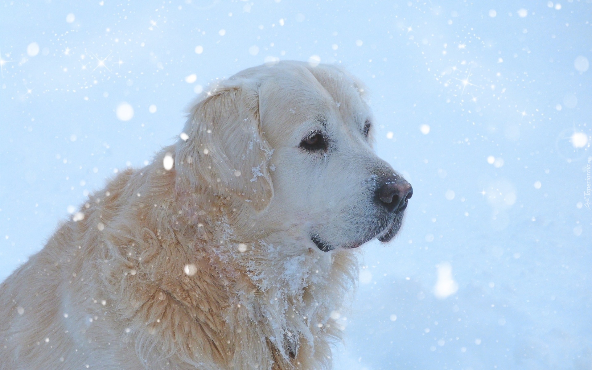 Edytor tapety: Golden Retriever, Pies, Śnieg, Zima