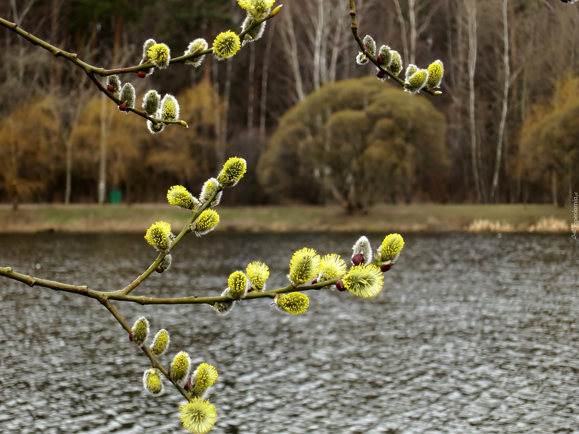 Edytor tapety: Rzeka, Las, Kwitnąca, Wierzba