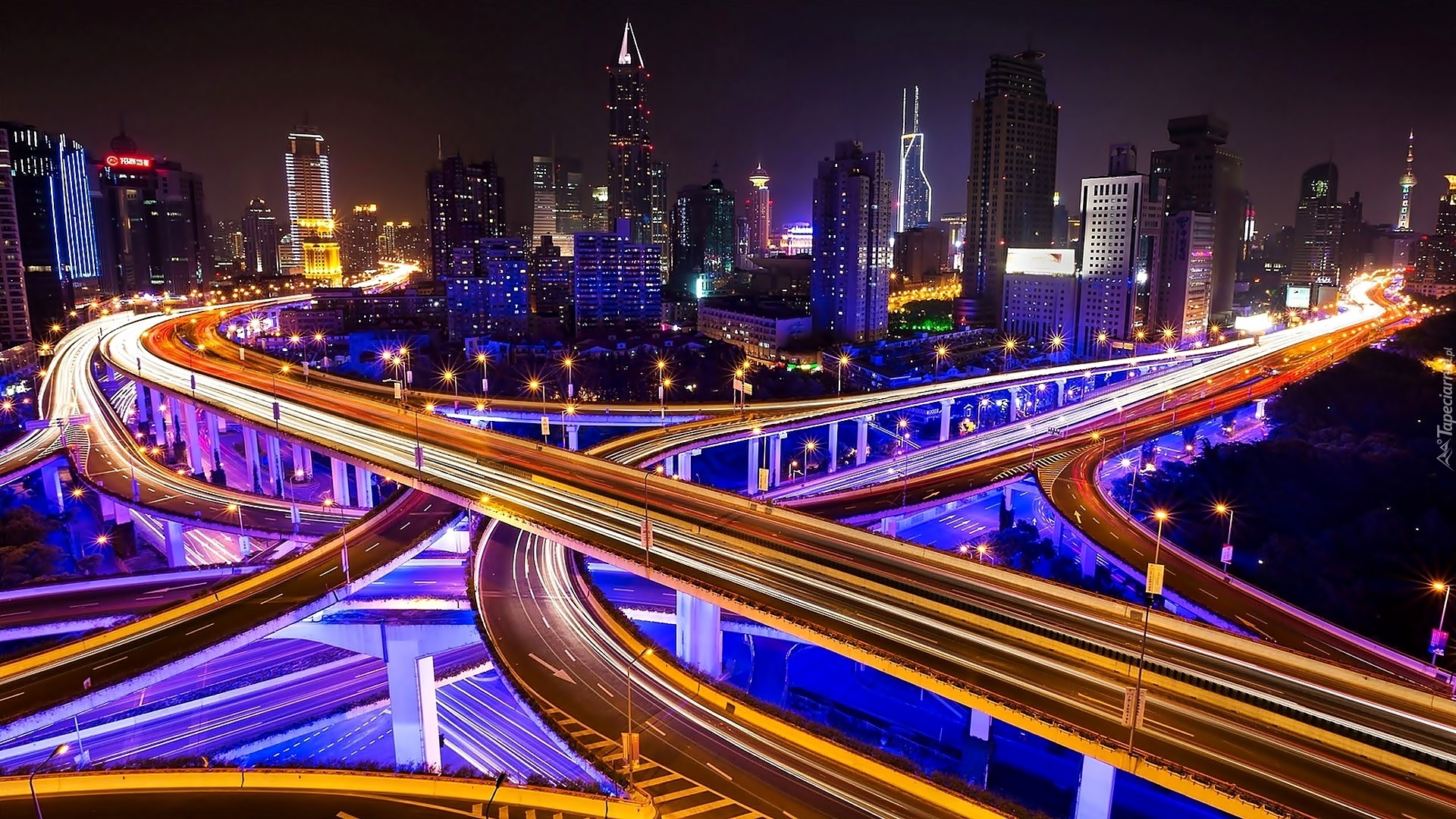 Edytor tapety: Drapacze, Chmur, Arterie, Komunikacyjne, Szanghaj, Nocą