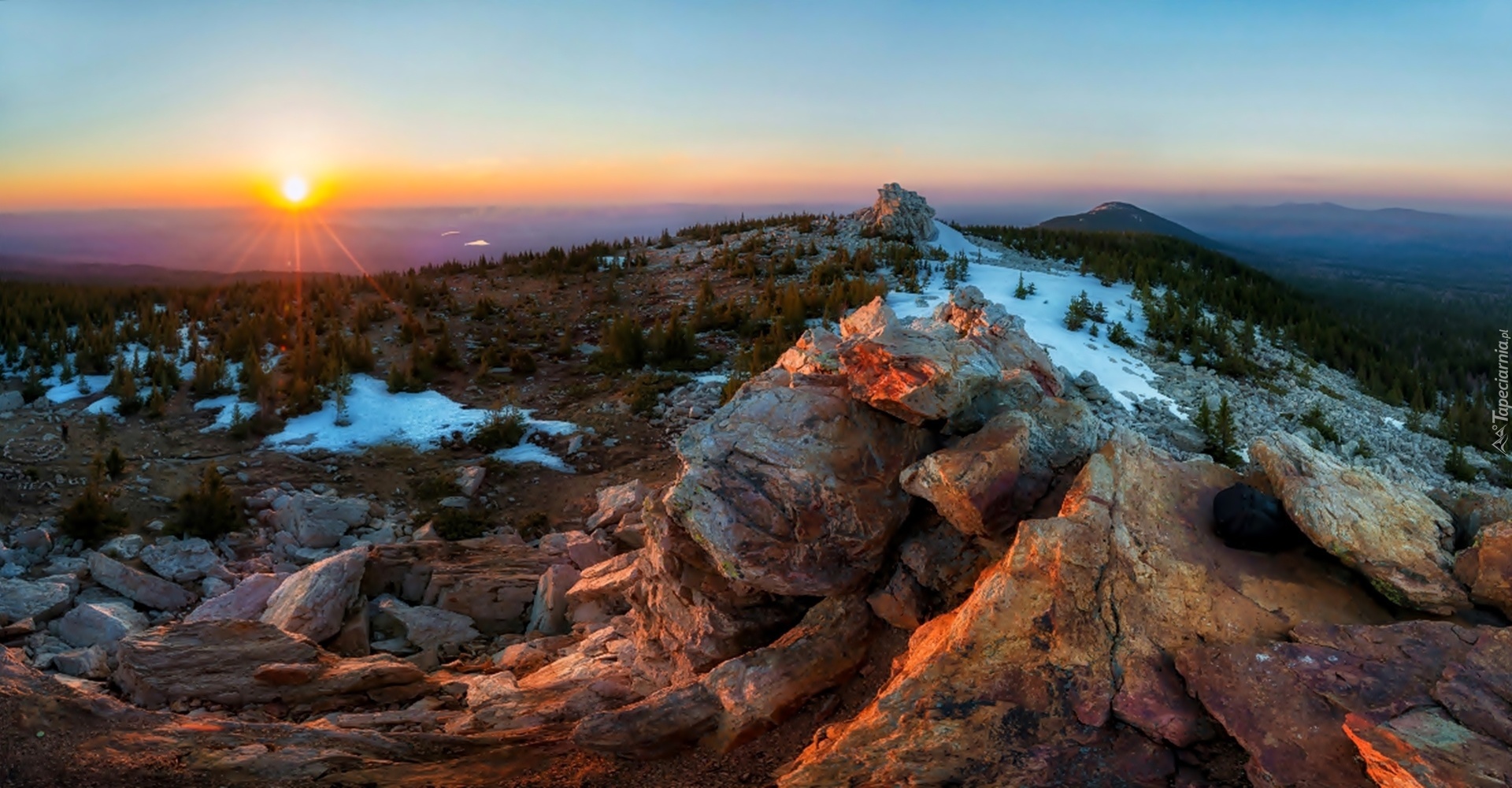 Edytor tapety: Zachód, Słońca, Skały, Drzewa