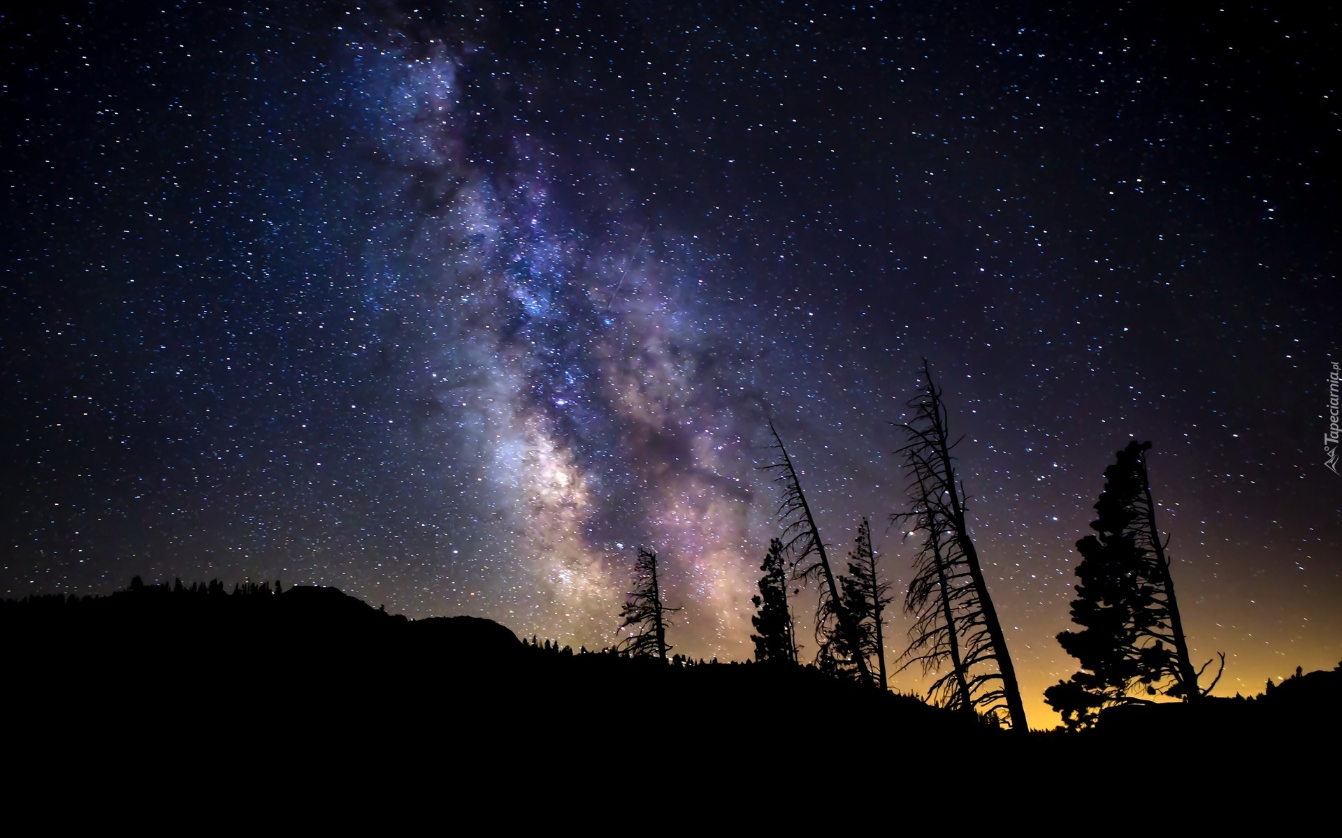 Edytor tapety: Noc, Niebo, Gwiazdy, Mleczna, Droga, Drzewa