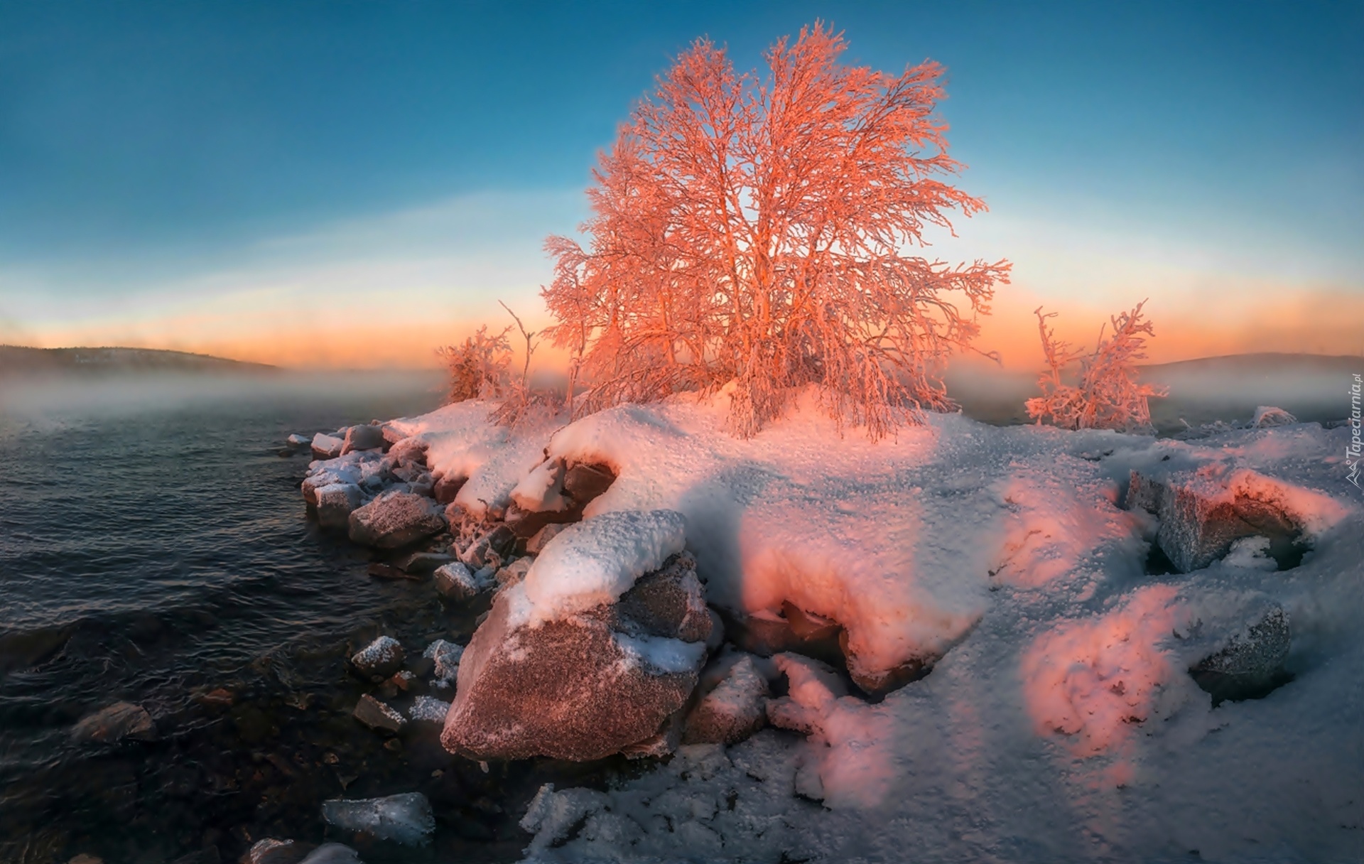 Edytor tapety: Kamienie, Mgła, Rzeka