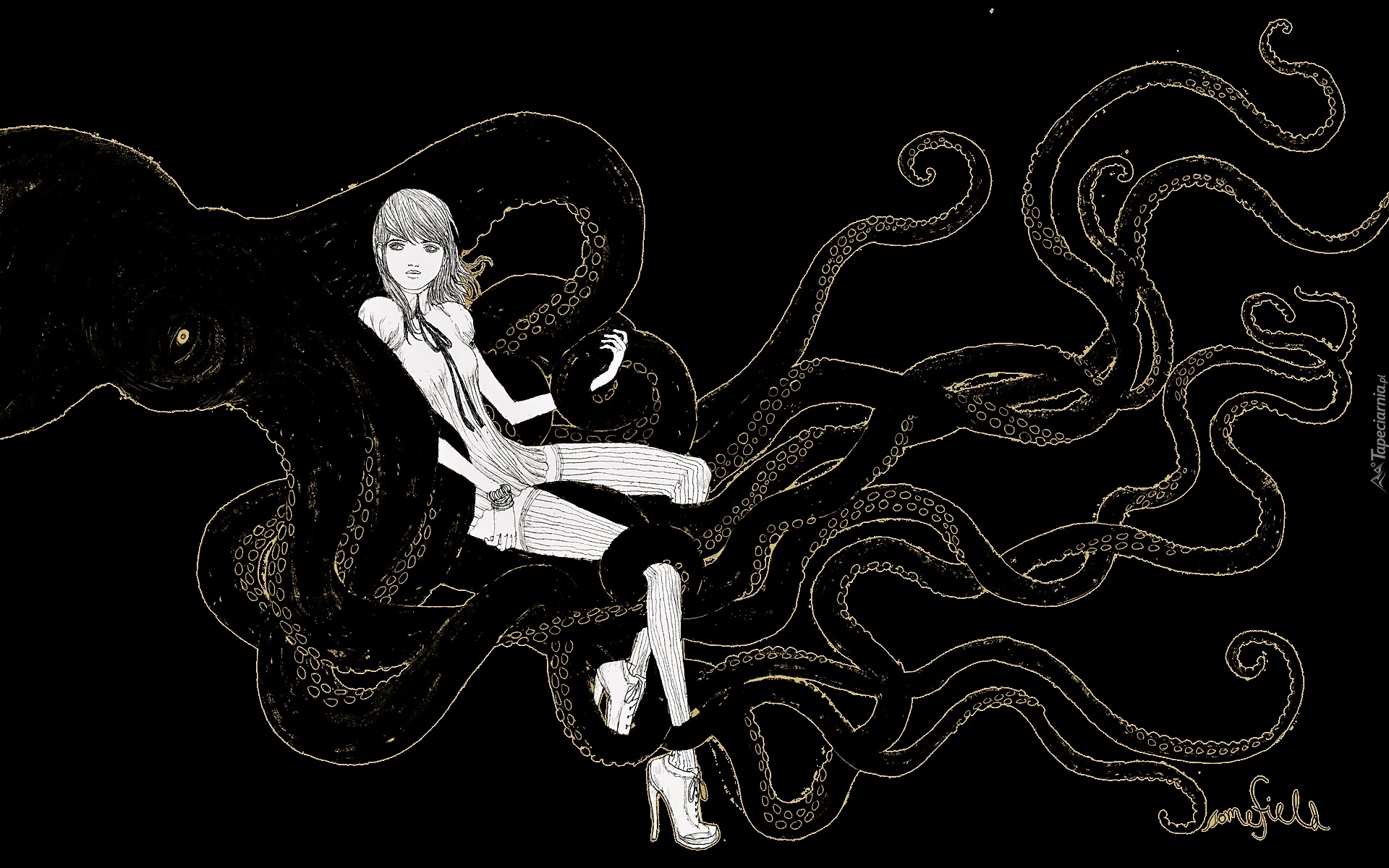 Edytor tapety: Rysunek, Kobieta, Ośmiornica