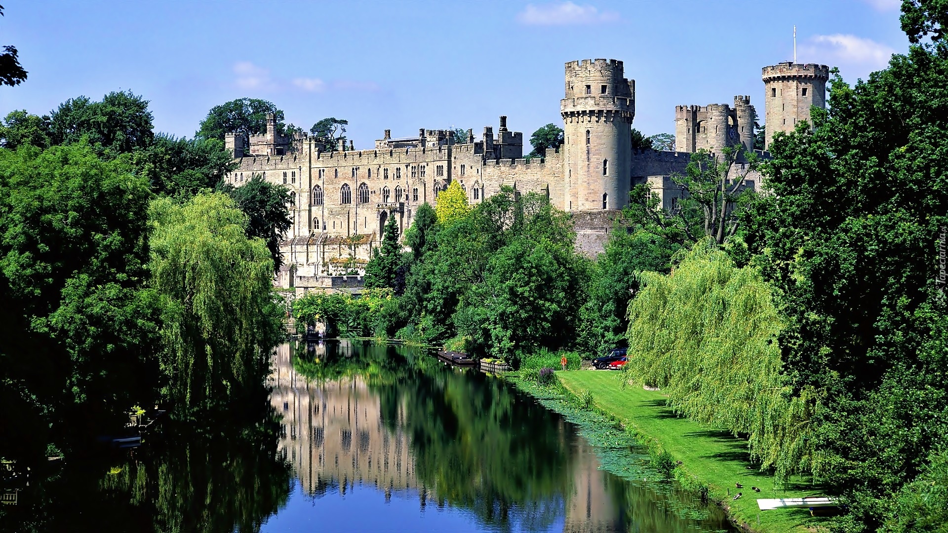 Edytor tapety: Zamek Warwick, Warwick, Anglia, Park, Rzeka Avon