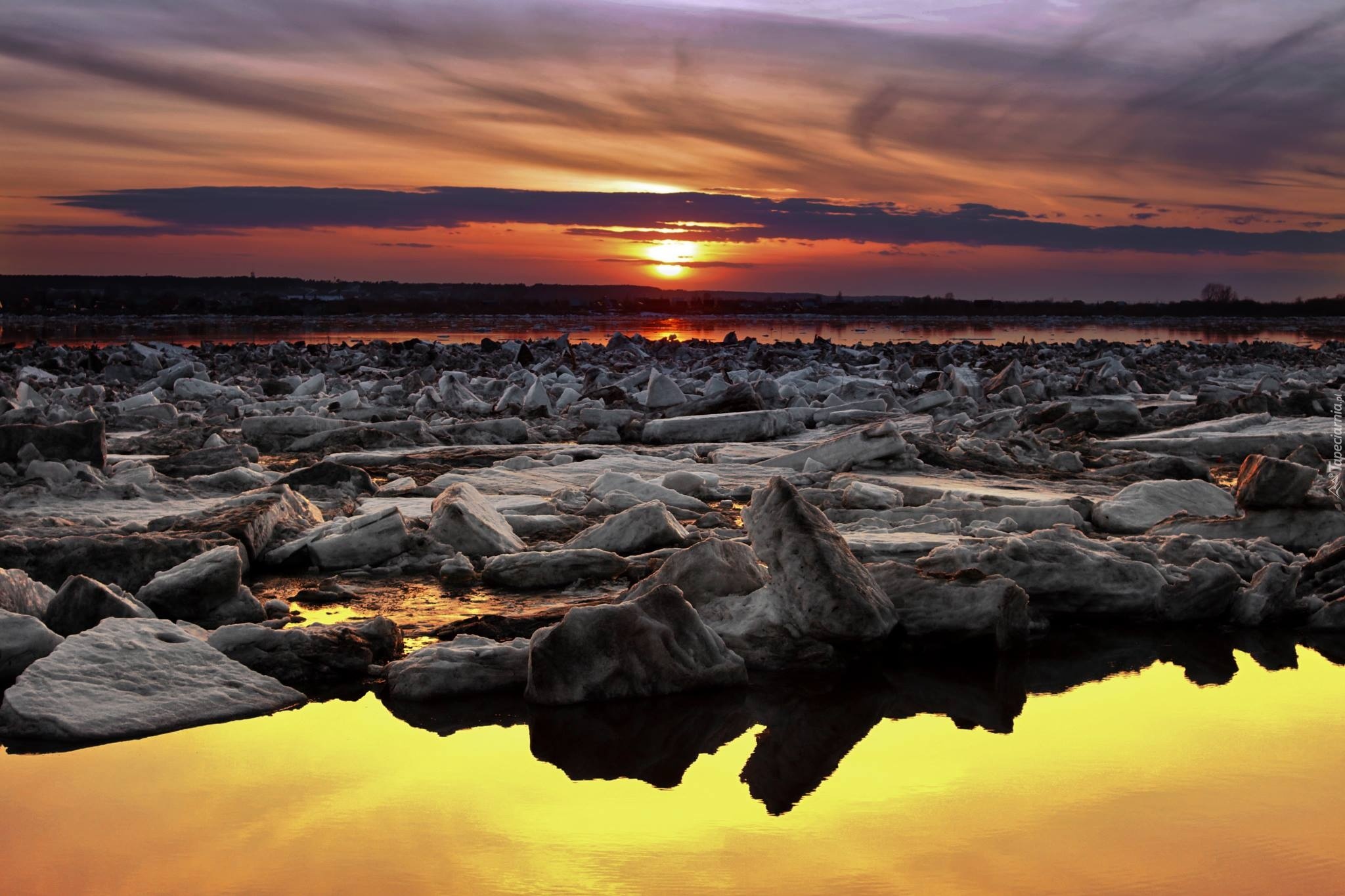 Edytor tapety: Zachód, Słońca, Morze, Lód