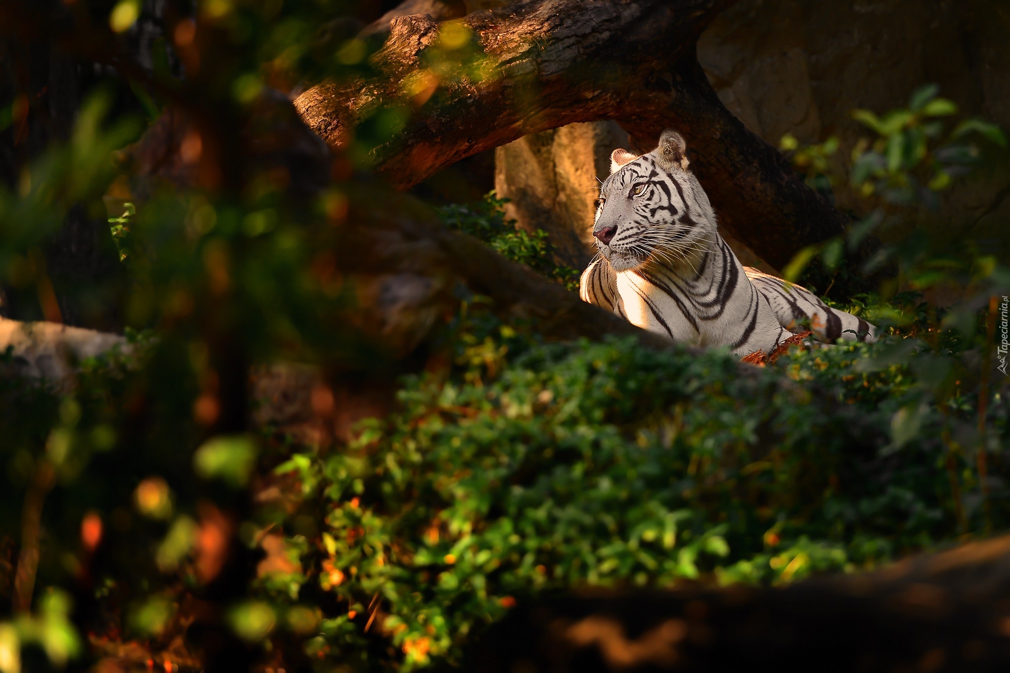 Edytor tapety: Biały, Tygrys, Zachód Słońca, Dżungla