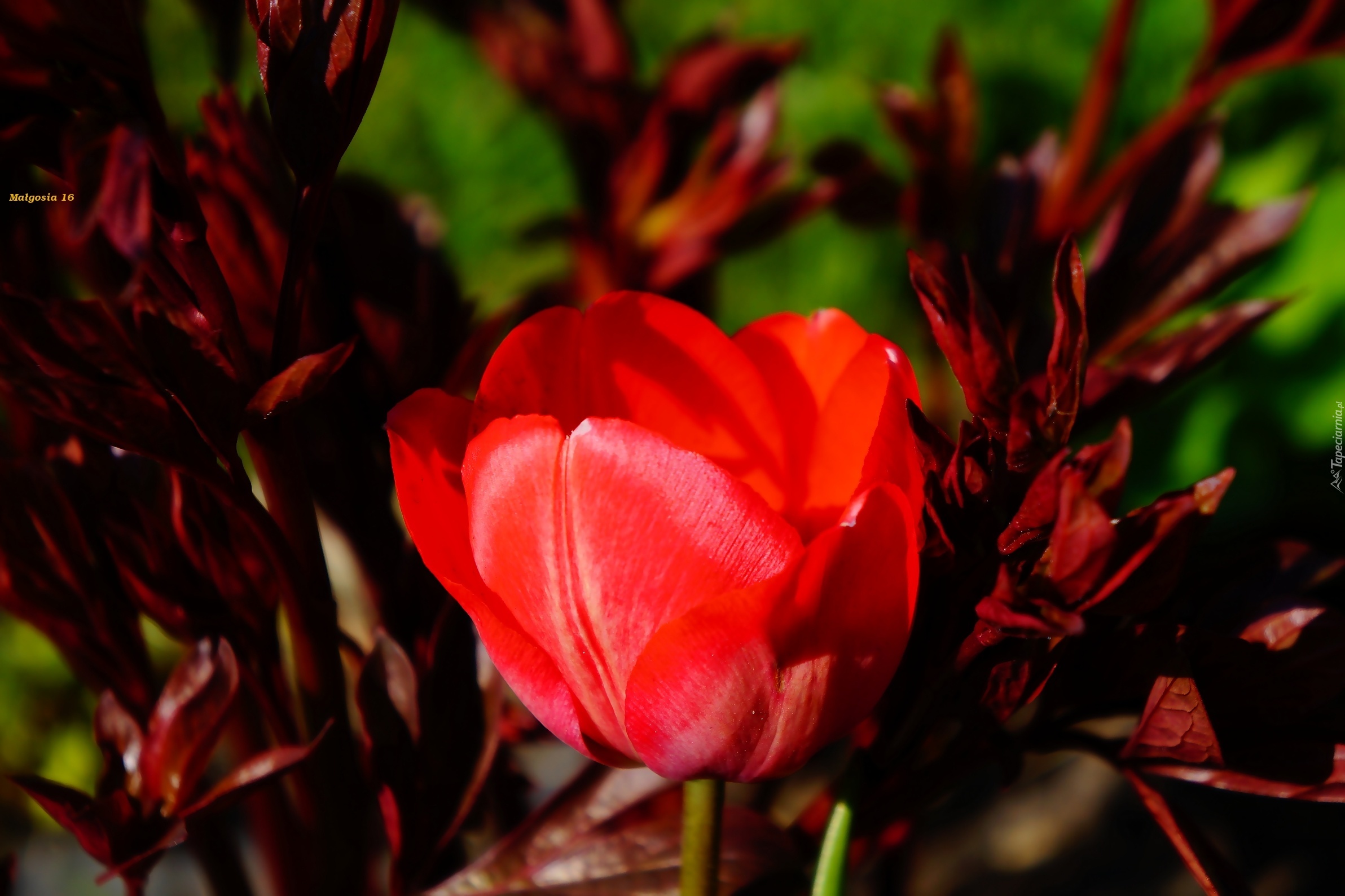 Edytor tapety: Kwiat, Wiosna, Tulipan, Czerwony