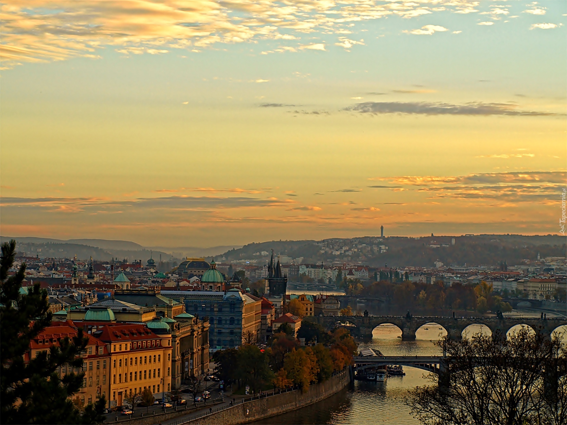 Edytor tapety: Rzeka, Most, Niebo, Panorama, Miasta