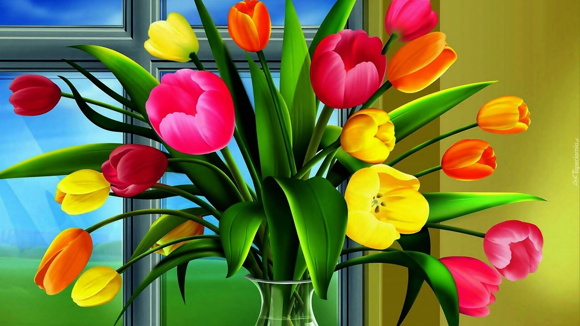 Edytor tapety: Bukiet, Tulipanów, Okno