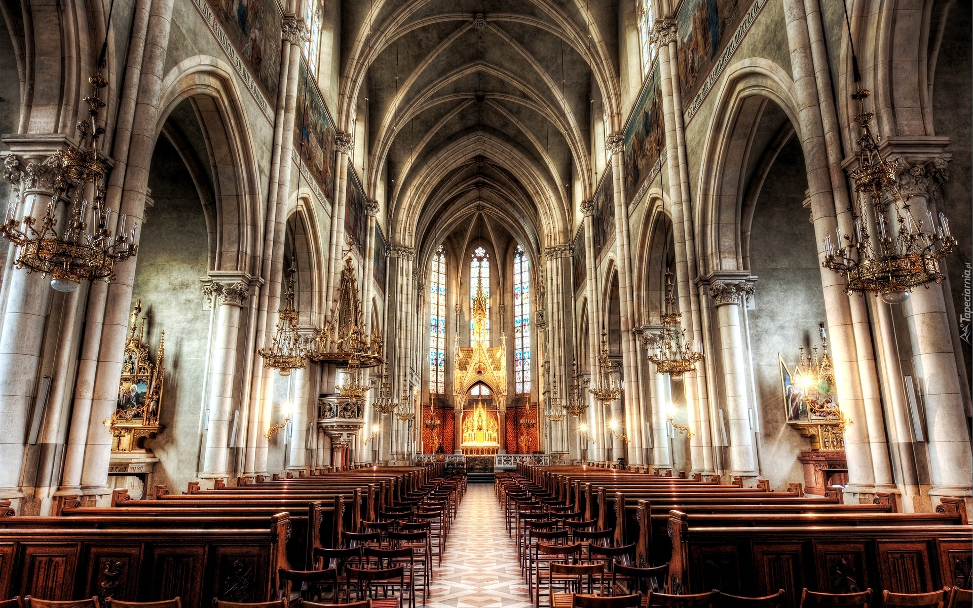 Edytor tapety: Katedra, Ołtarz, Ławki, Wnętrze