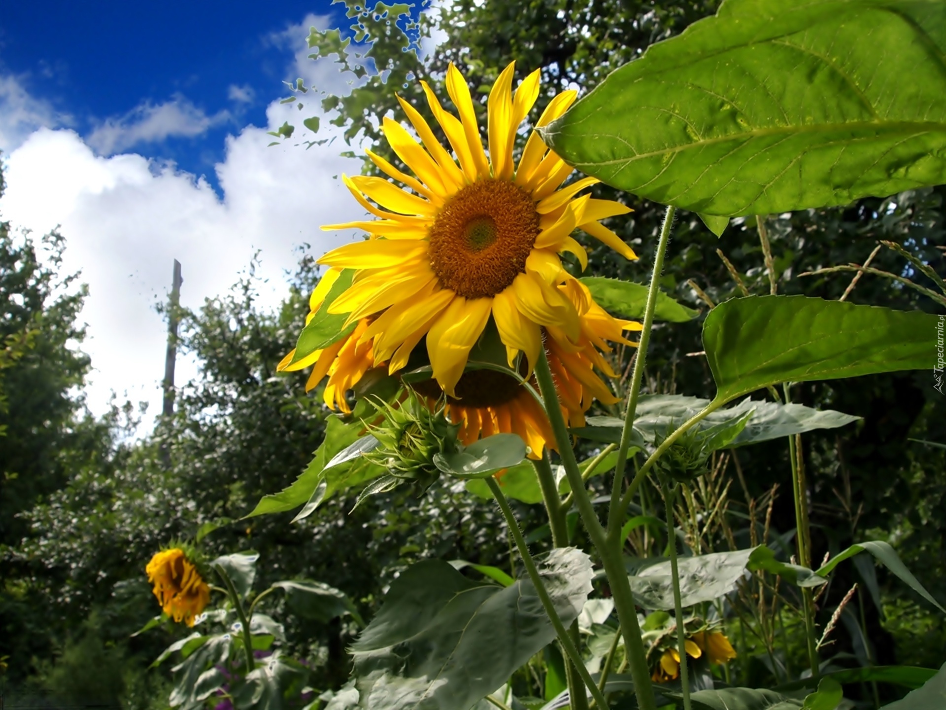 Edytor tapety: Słoneczniki, Niebie, Chmury