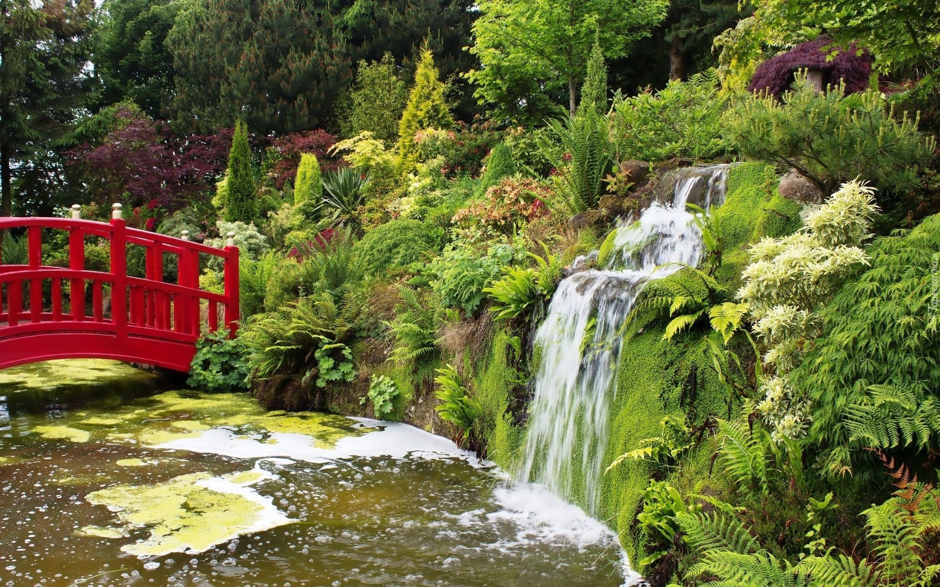 Edytor tapety: Mostek, Rzeczka, Park, Wodospad
