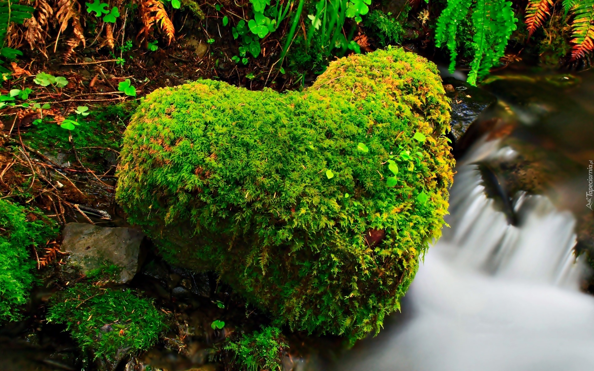 Edytor tapety: Wodospad, Kamień, Serce, Mech