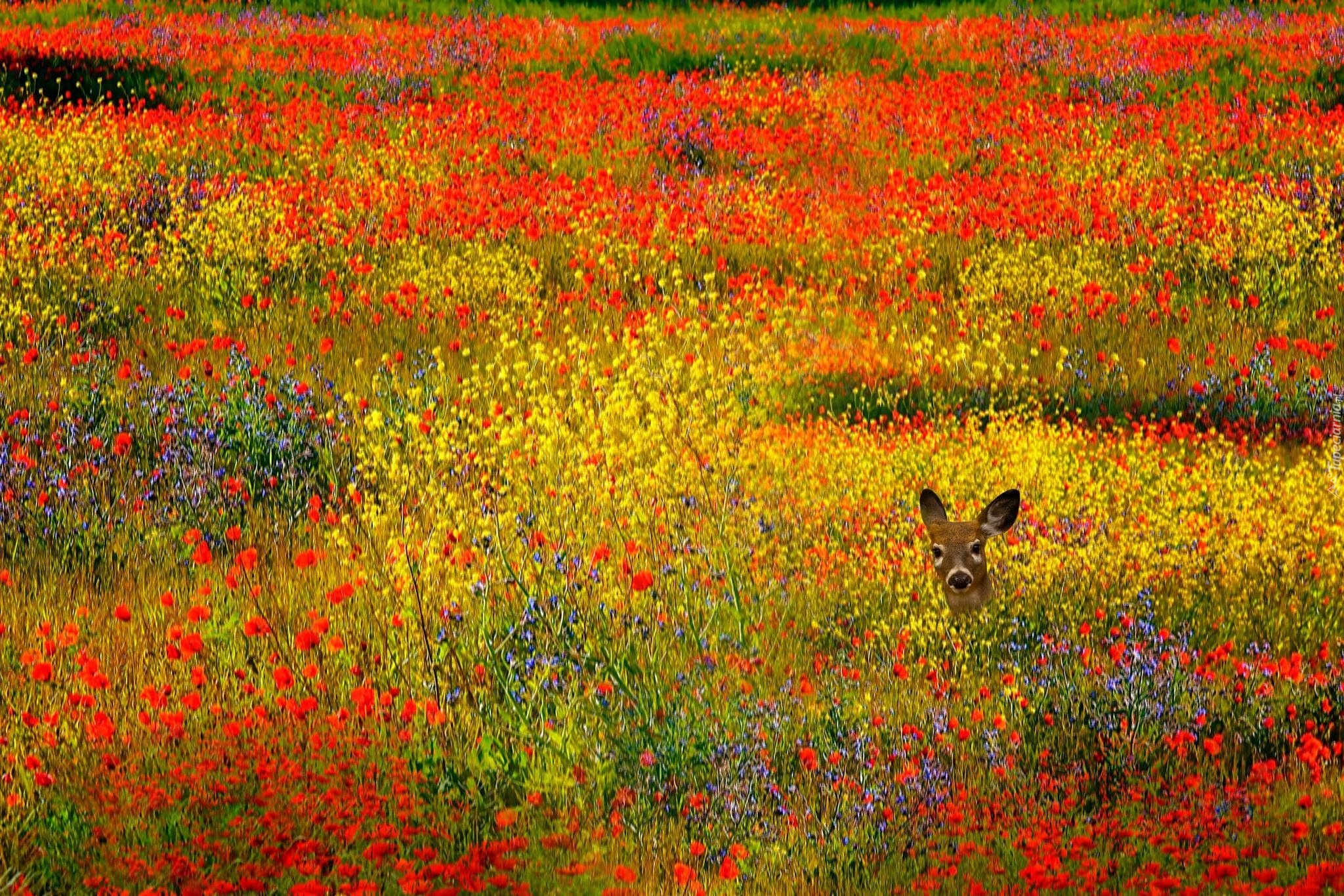 Edytor tapety: Łąka, Kwiaty, Sarna, Głowa