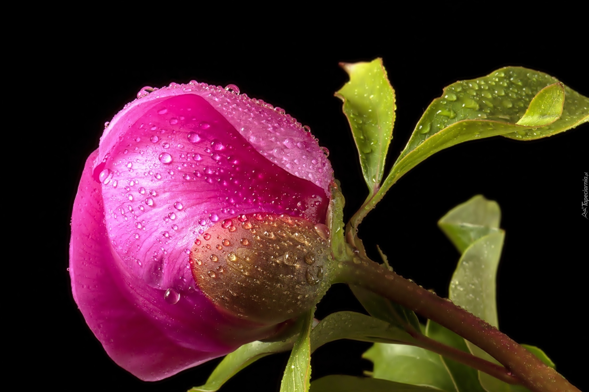 Edytor tapety: Piwonia, Krople, Wody
