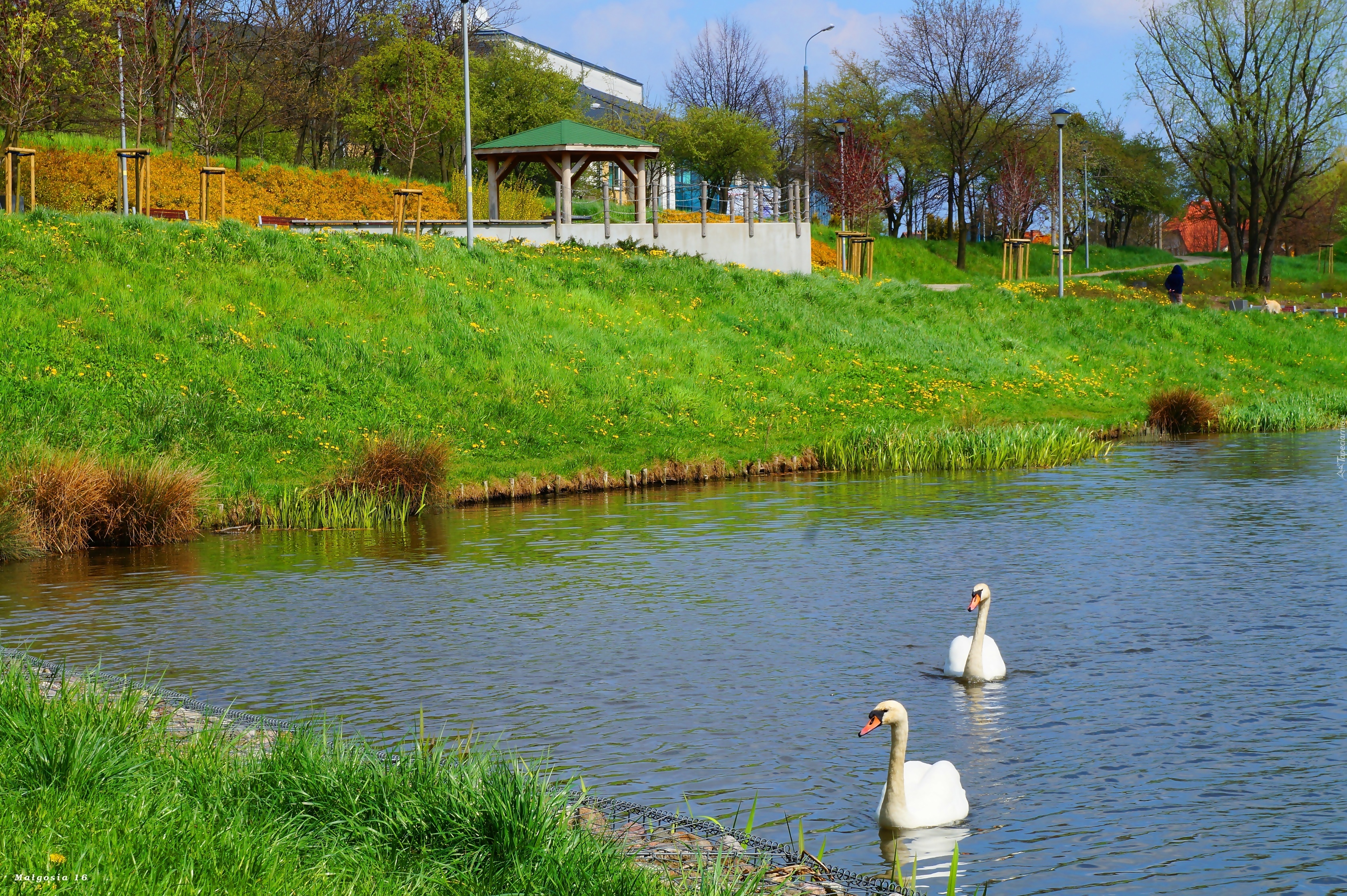 Edytor tapety: Jezioro, Woda, Ptaki, Białe, Łabędzie