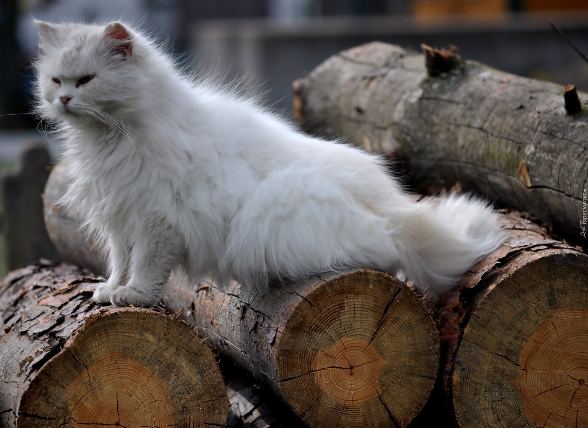 Edytor tapety: Biały, Kot, Kłody, Drzewa
