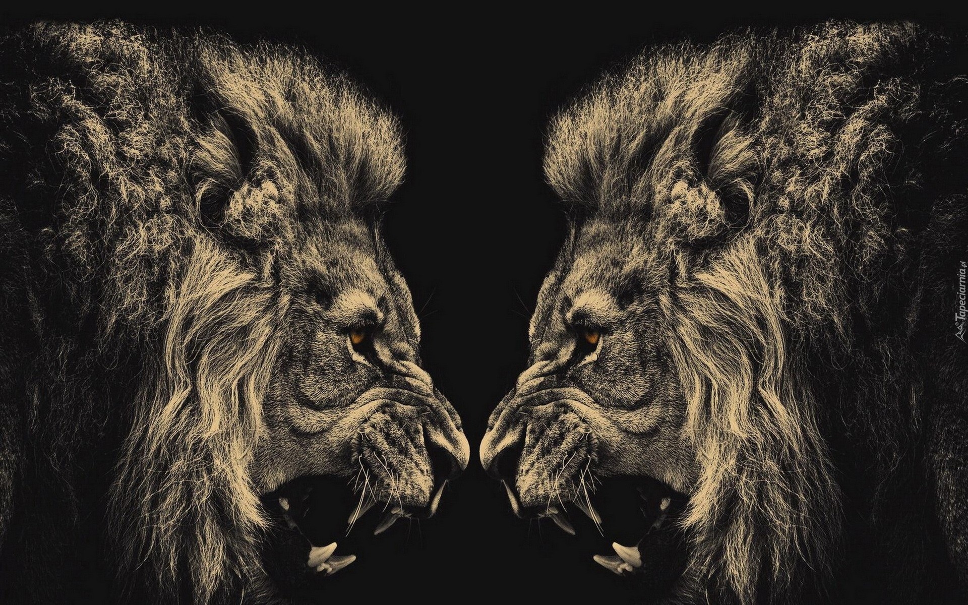 Edytor tapety: Zwierzęta, Lwy, Brązowe oczy, Kły, Samce