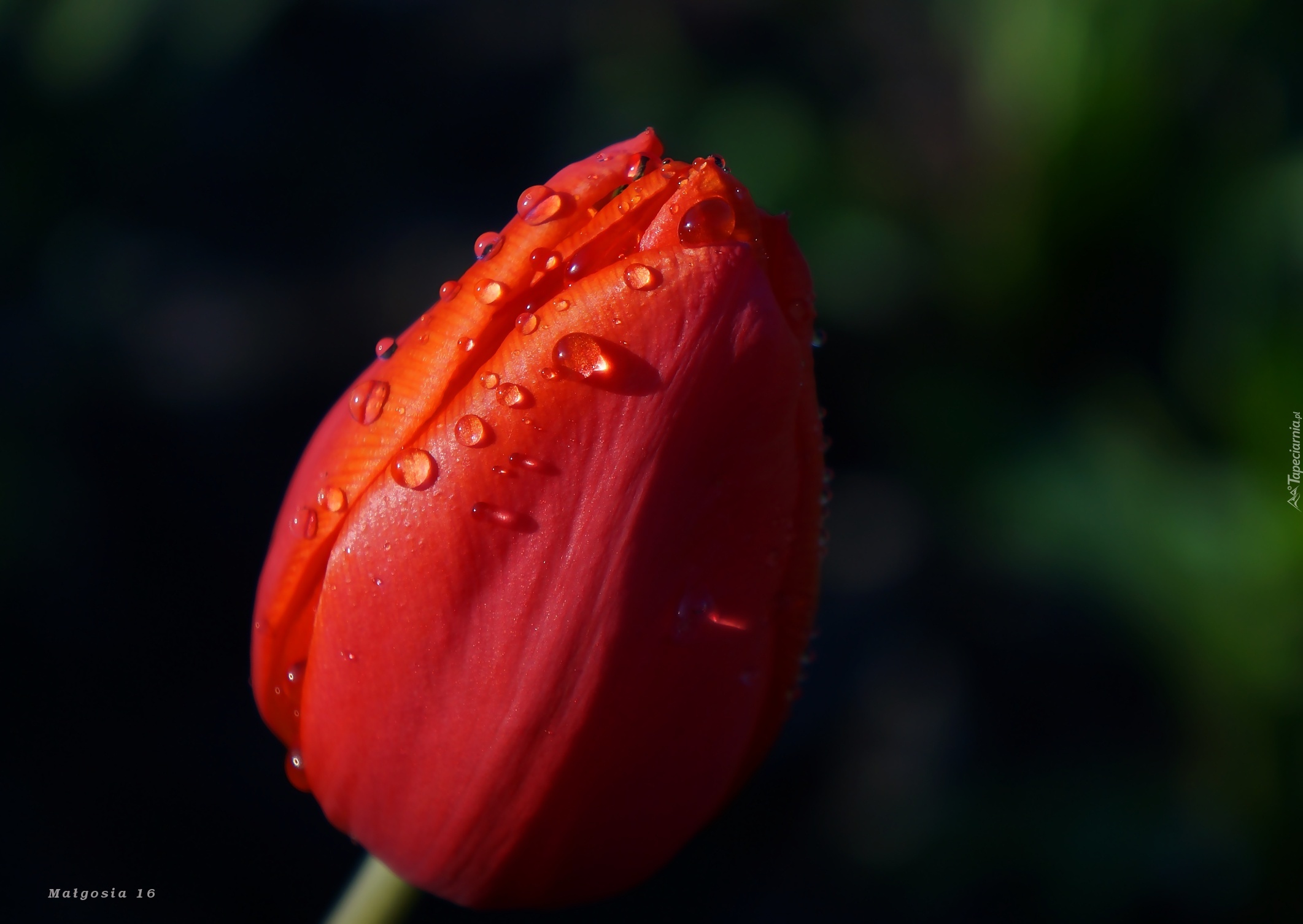 Edytor tapety: Czerwony, Kwiat, Tulipan, Krople