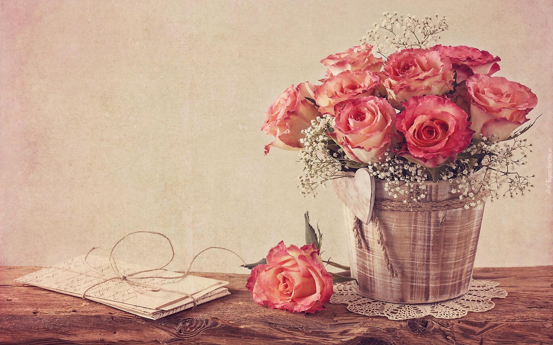 Edytor tapety: Kompozycja, Dekoracja, Bukiet, Róże, Listy