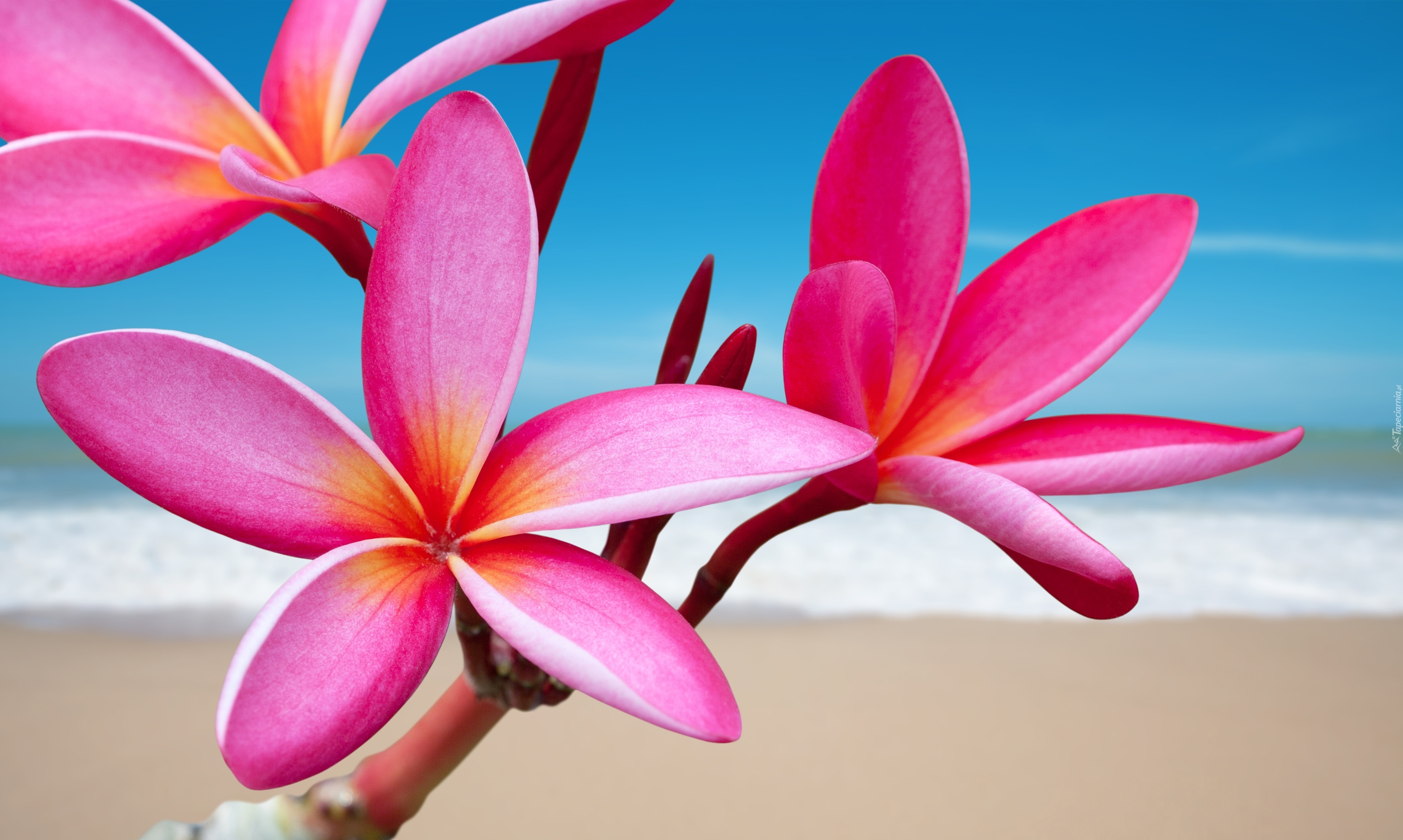 Edytor tapety: Kwiaty, Plumeria, Rózowa, Plaża, Morze