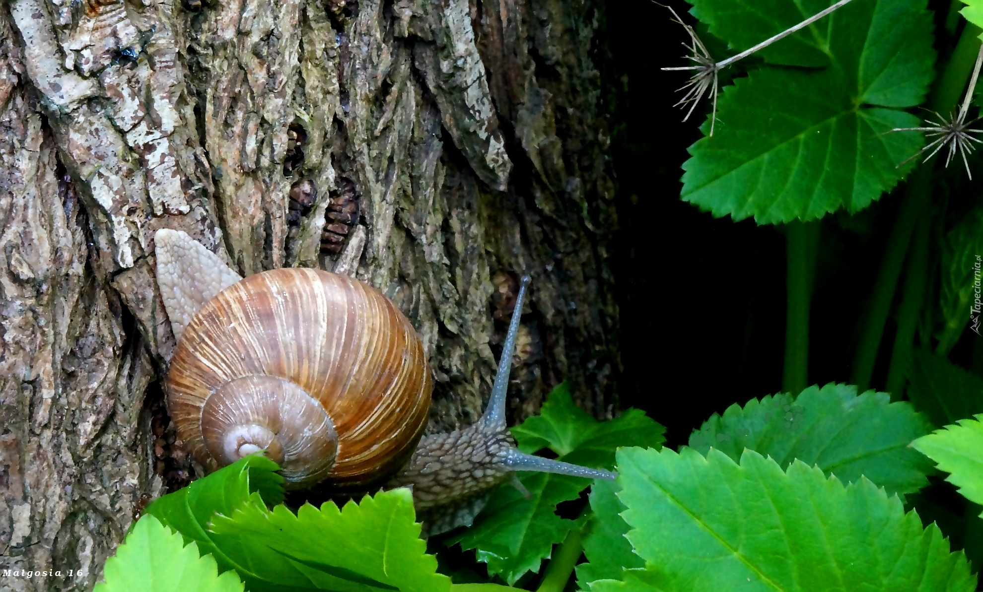 Edytor tapety: Ślimak, Muszla, Liście