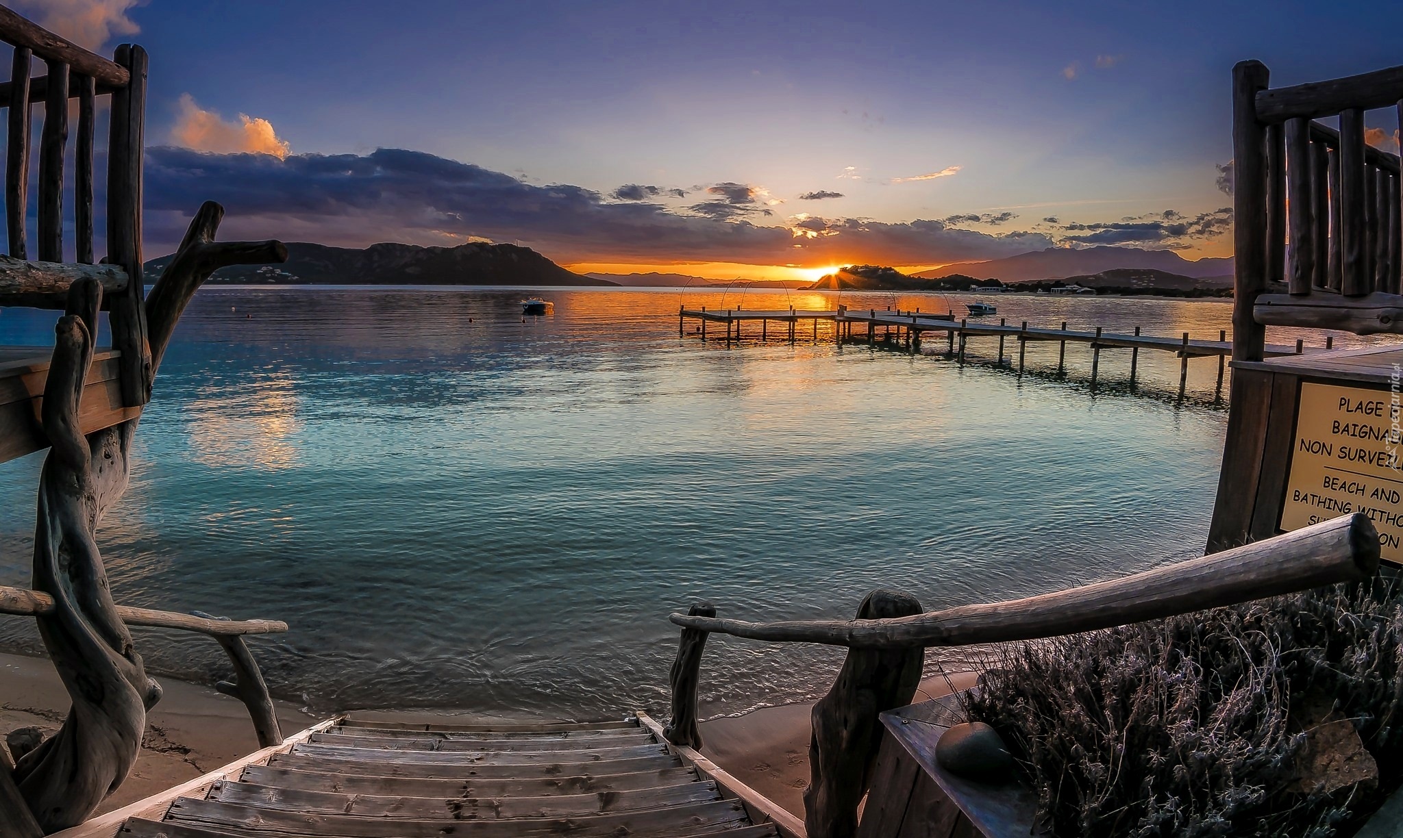 Edytor tapety: Jezioro, Zachód Słońca, Schody, Zejście, Molo