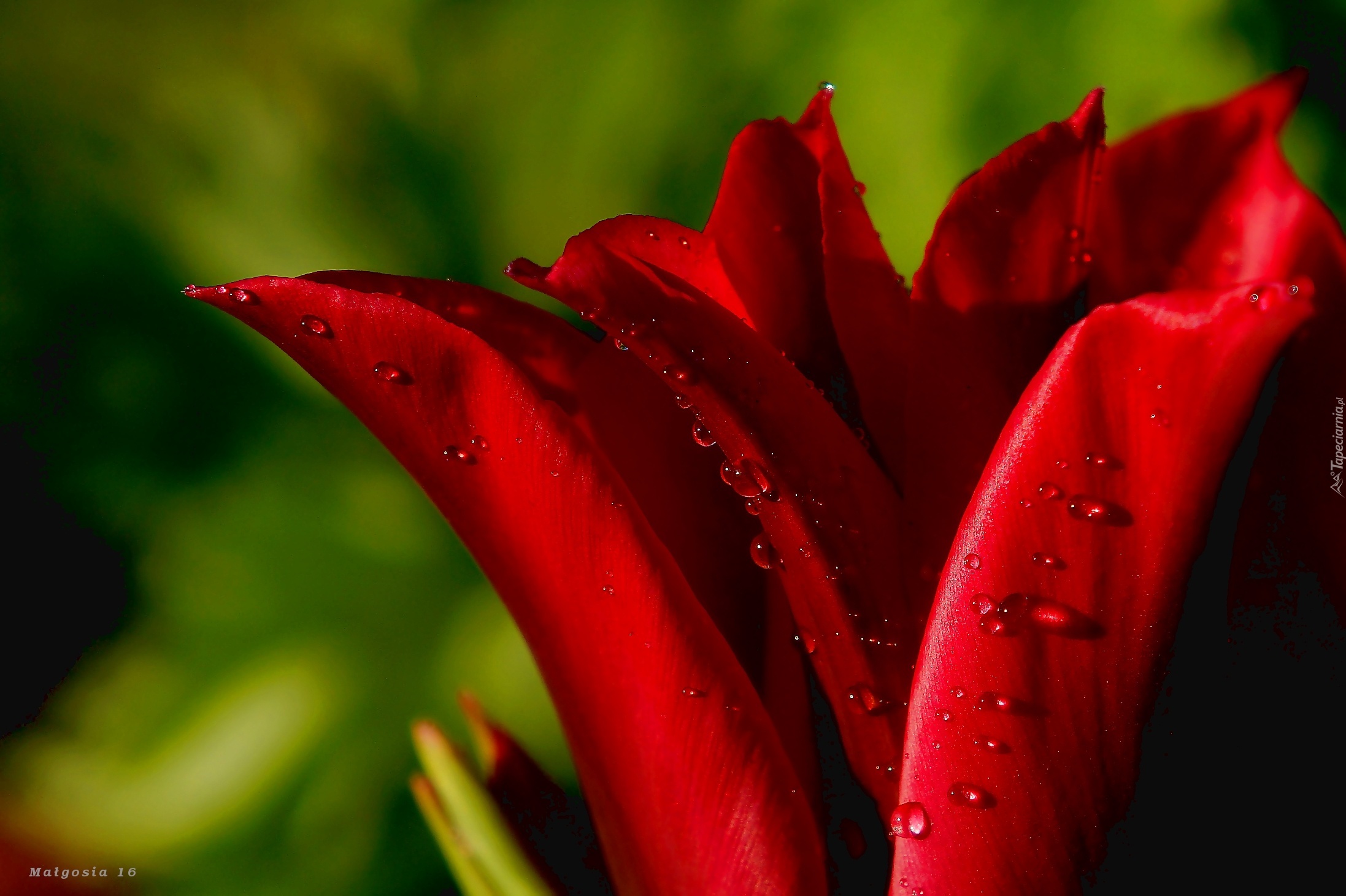 Edytor tapety: Kwiat, Czerwony, Tulipan, Płatki, Makro, Krople