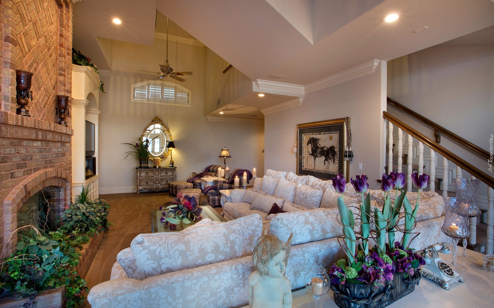 Edytor tapety: Salon, Meble, Kominek, Lustro, Schody