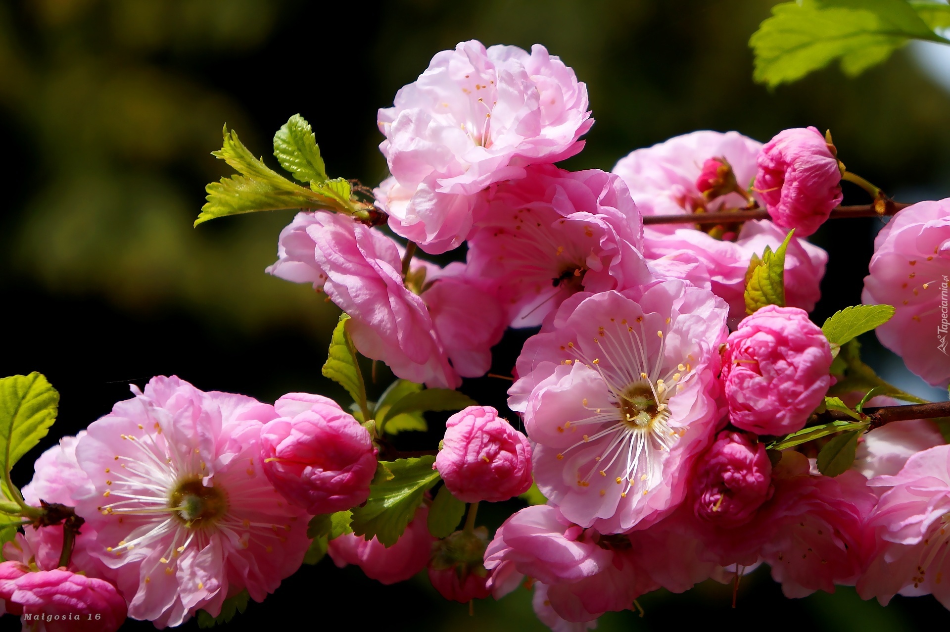 Edytor tapety: Kwiaty, Kwitnące, Różowe, Gałązka, Migdałek