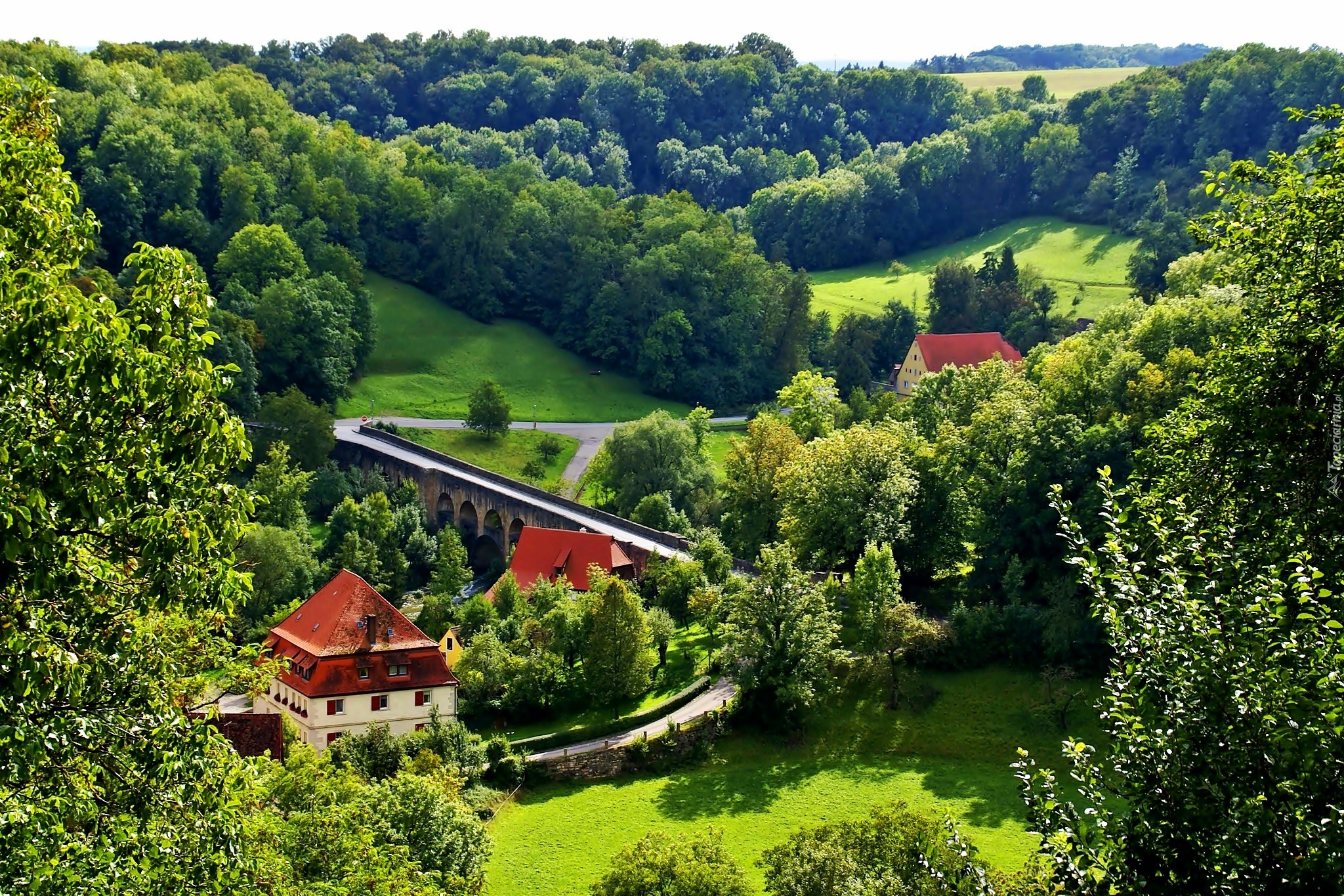 Edytor tapety: Droga, Pola, Domy, Rothenburg