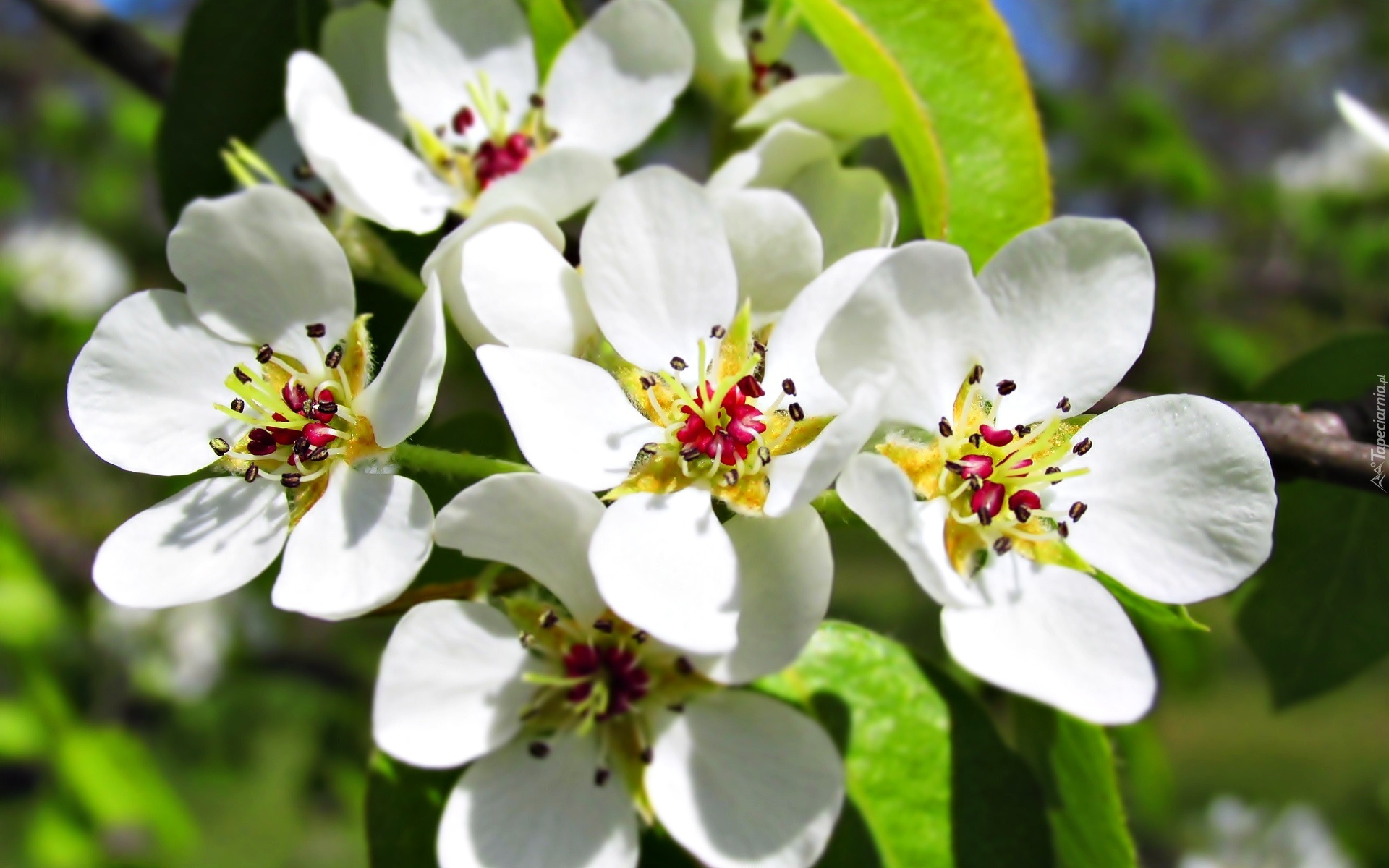 Edytor tapety: Makro, Wiosna, Kwiaty, Grusza