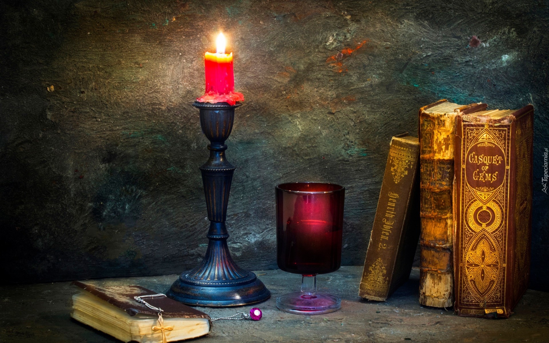 Edytor tapety: Kompozycja, Książki, Świeca, Modlitewnik, Różaniec