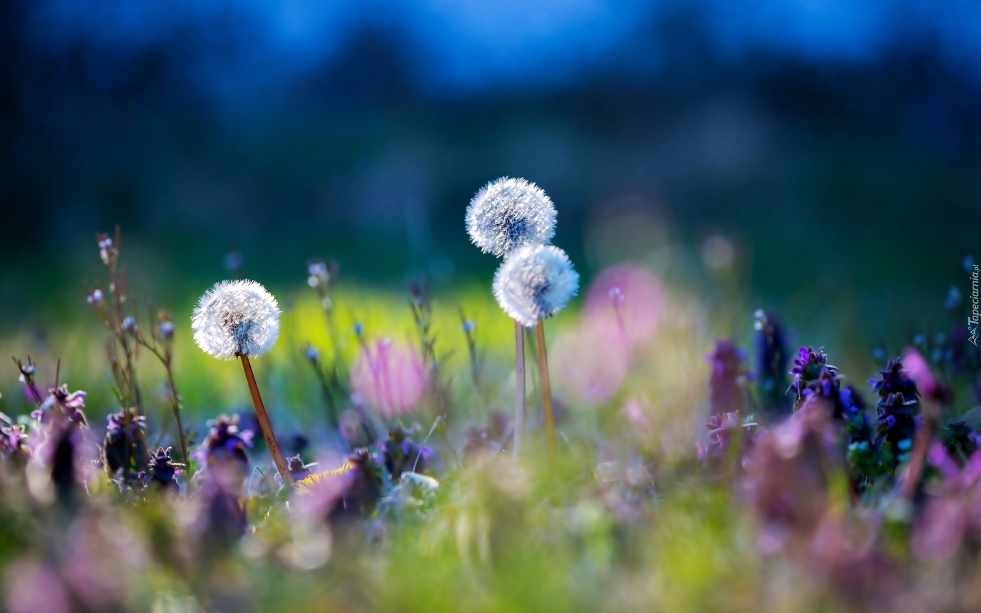 Edytor tapety: Łąka, Kwiaty, Trawa, Mniszek