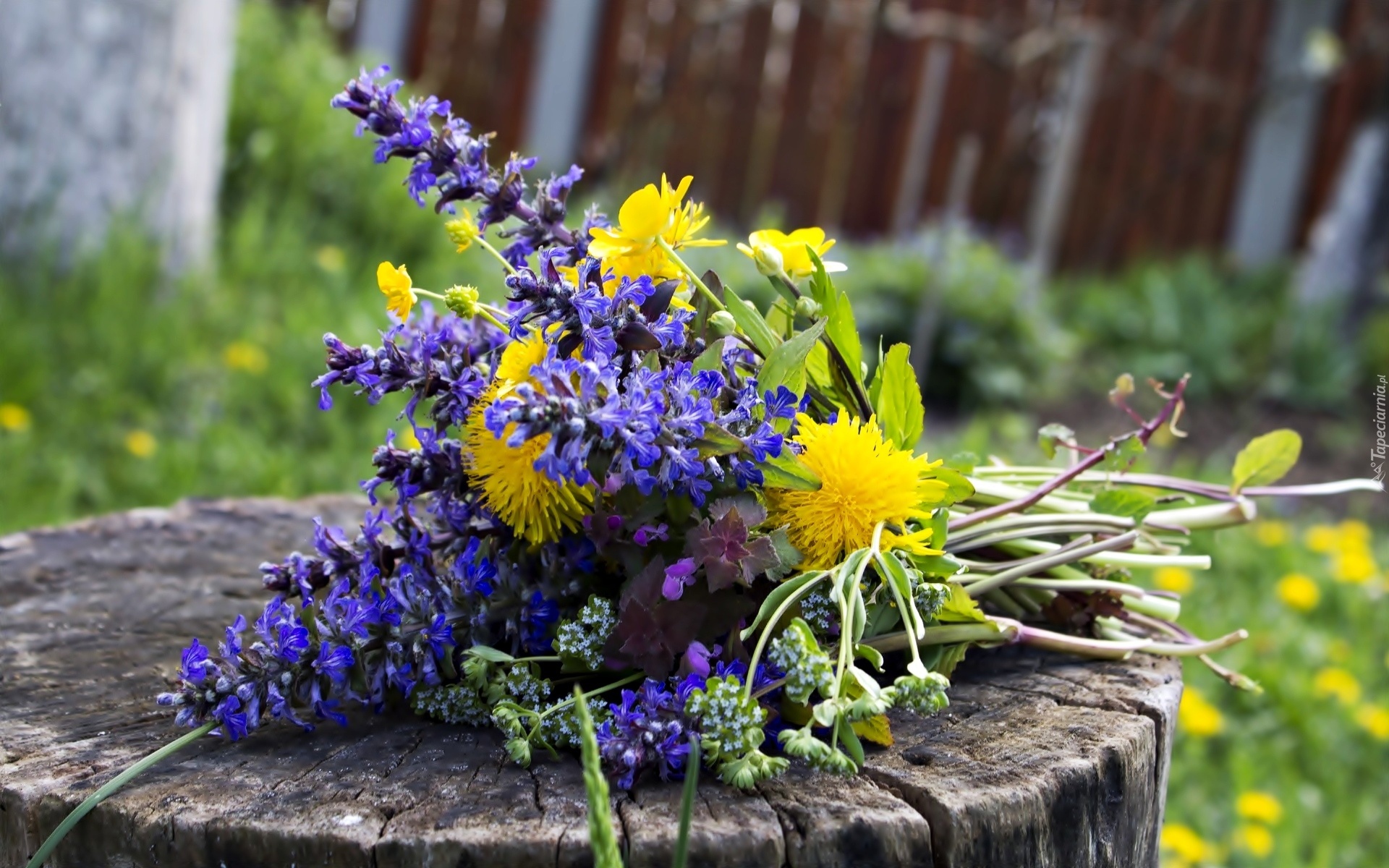 Edytor tapety: Bukiet, Polne, Kwiaty, Mniszek, Pień