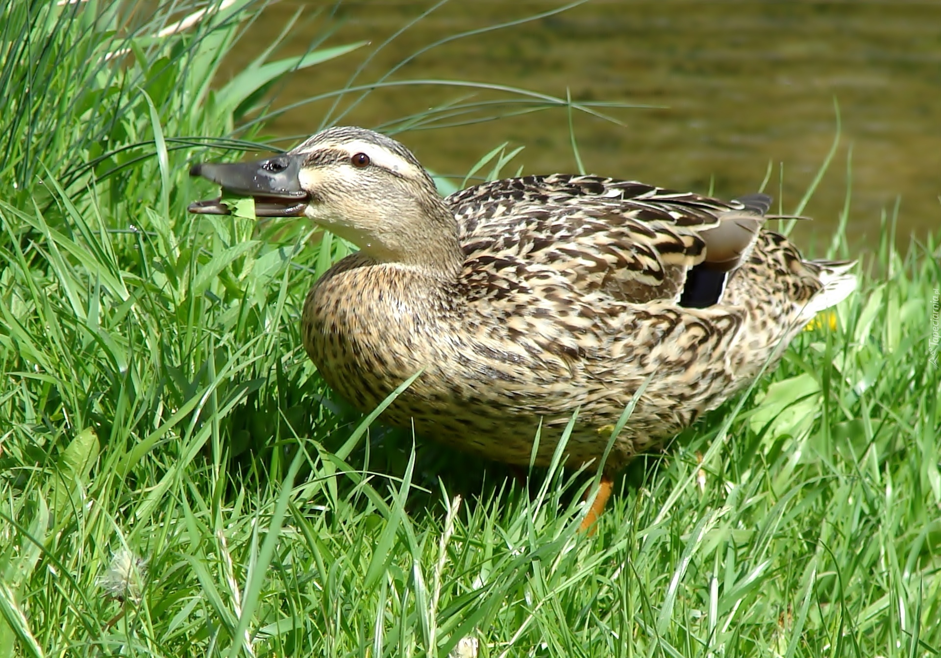 Edytor tapety: Kaczka krzyżówka, Trawa