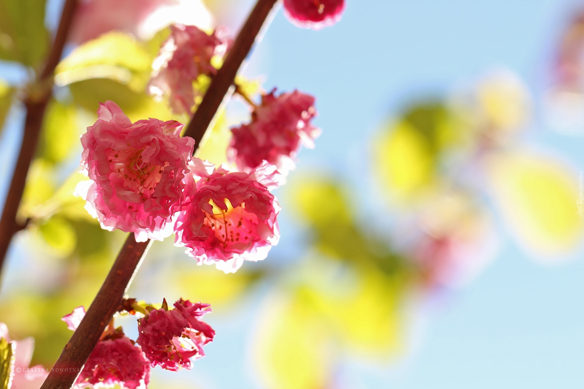 Edytor tapety: Migdałowiec, Różowe, Kwiaty, Krzew