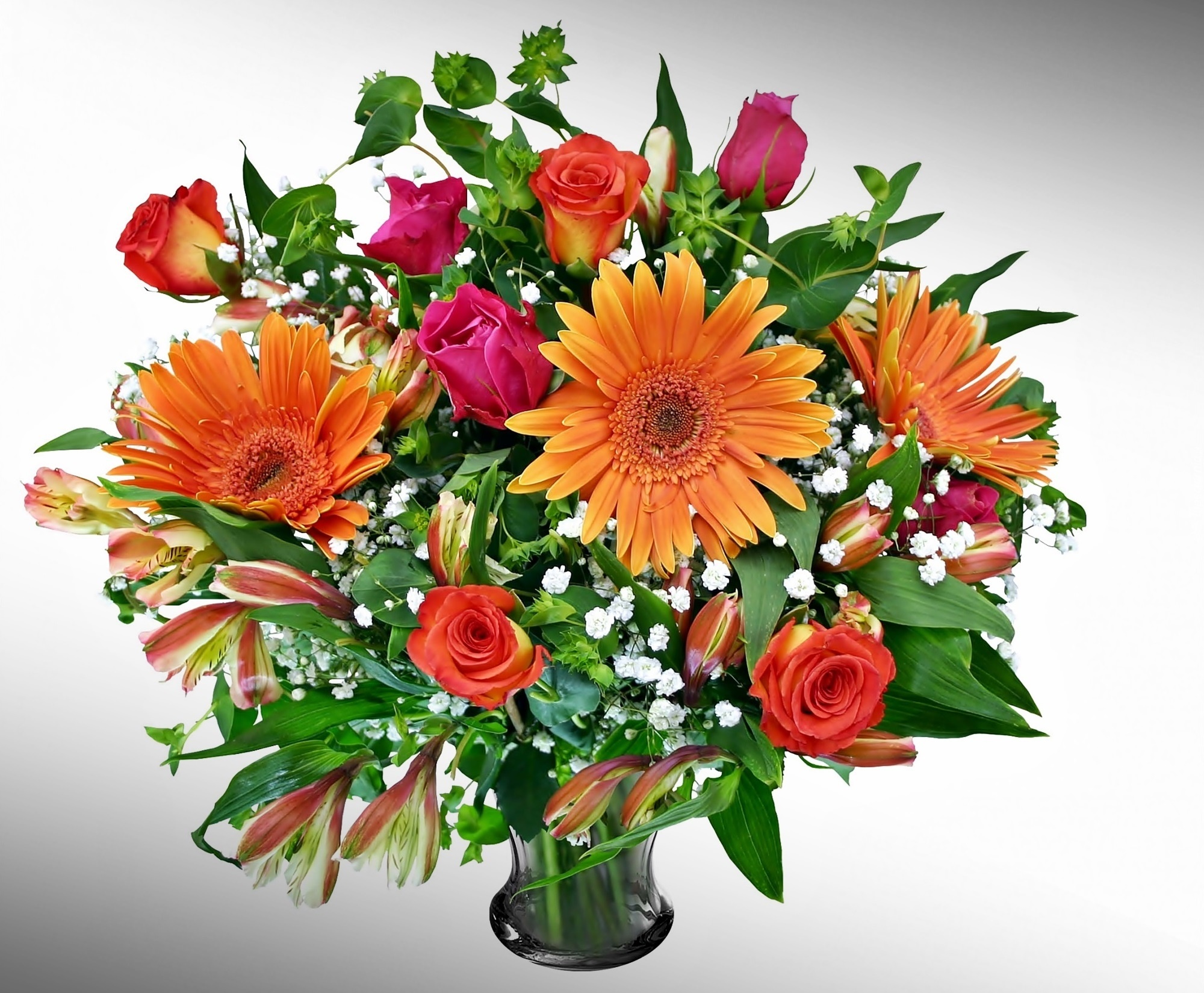 Edytor tapety: Bukiet, Róże, Gerbery