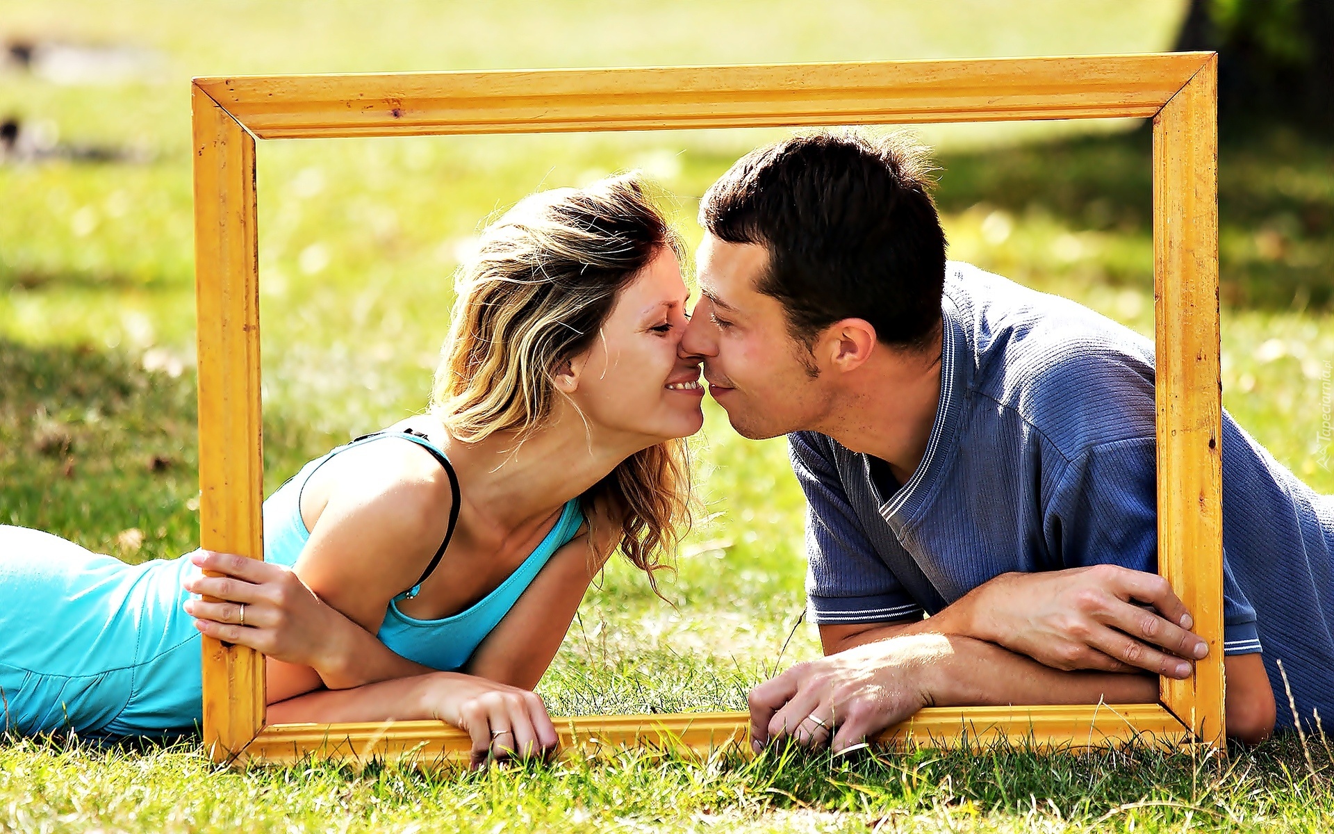 Edytor tapety: Para, Miłość, Łąka, Ramka