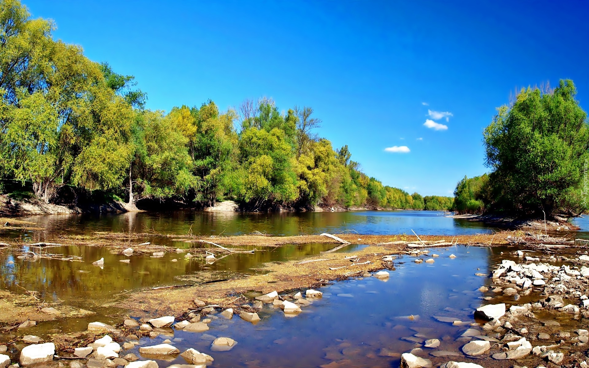 Edytor tapety: Rzeka, Drzewa, Kamienie