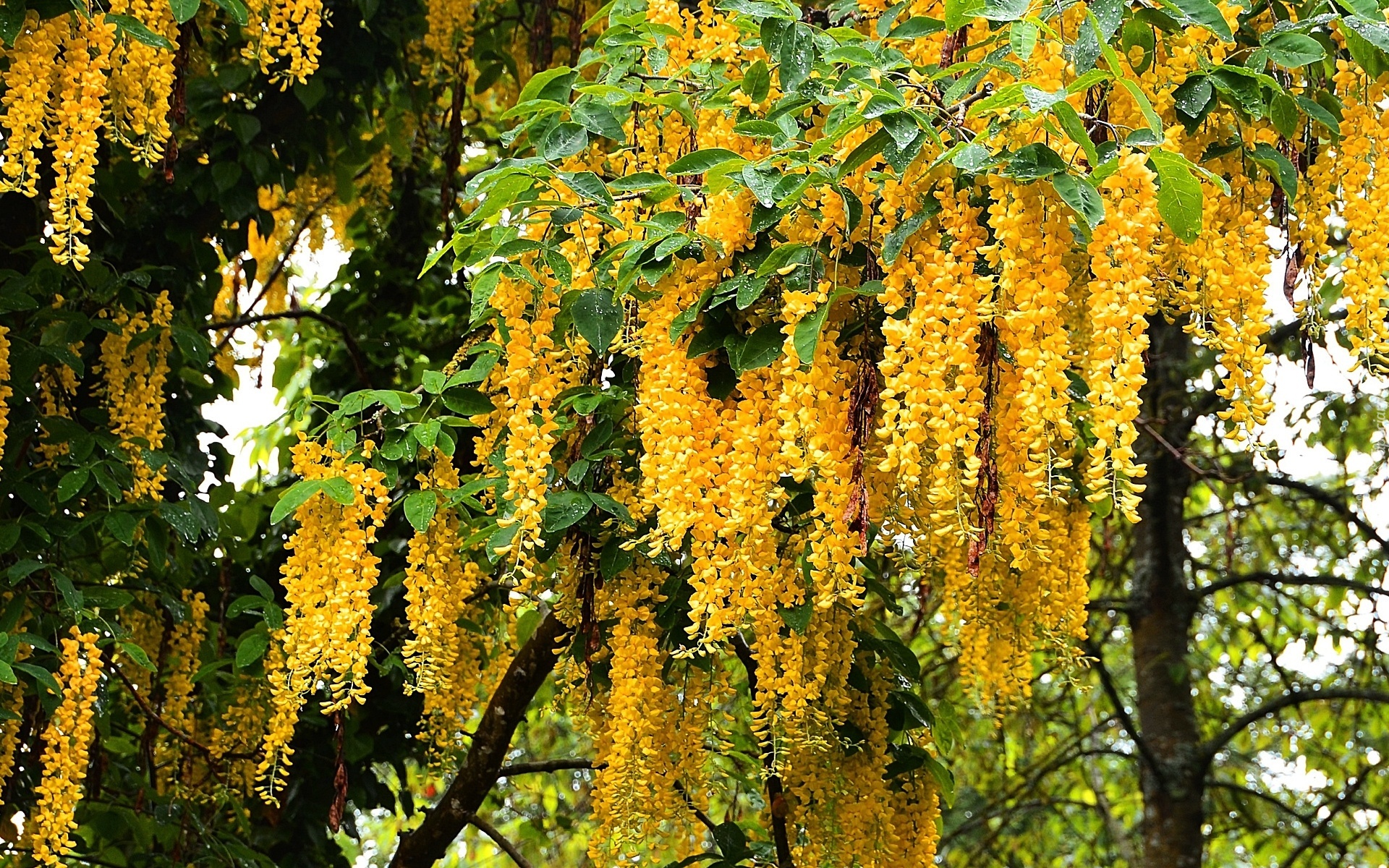 Edytor tapety: Drzewo, Żółte, Kwiaty, Złotokap