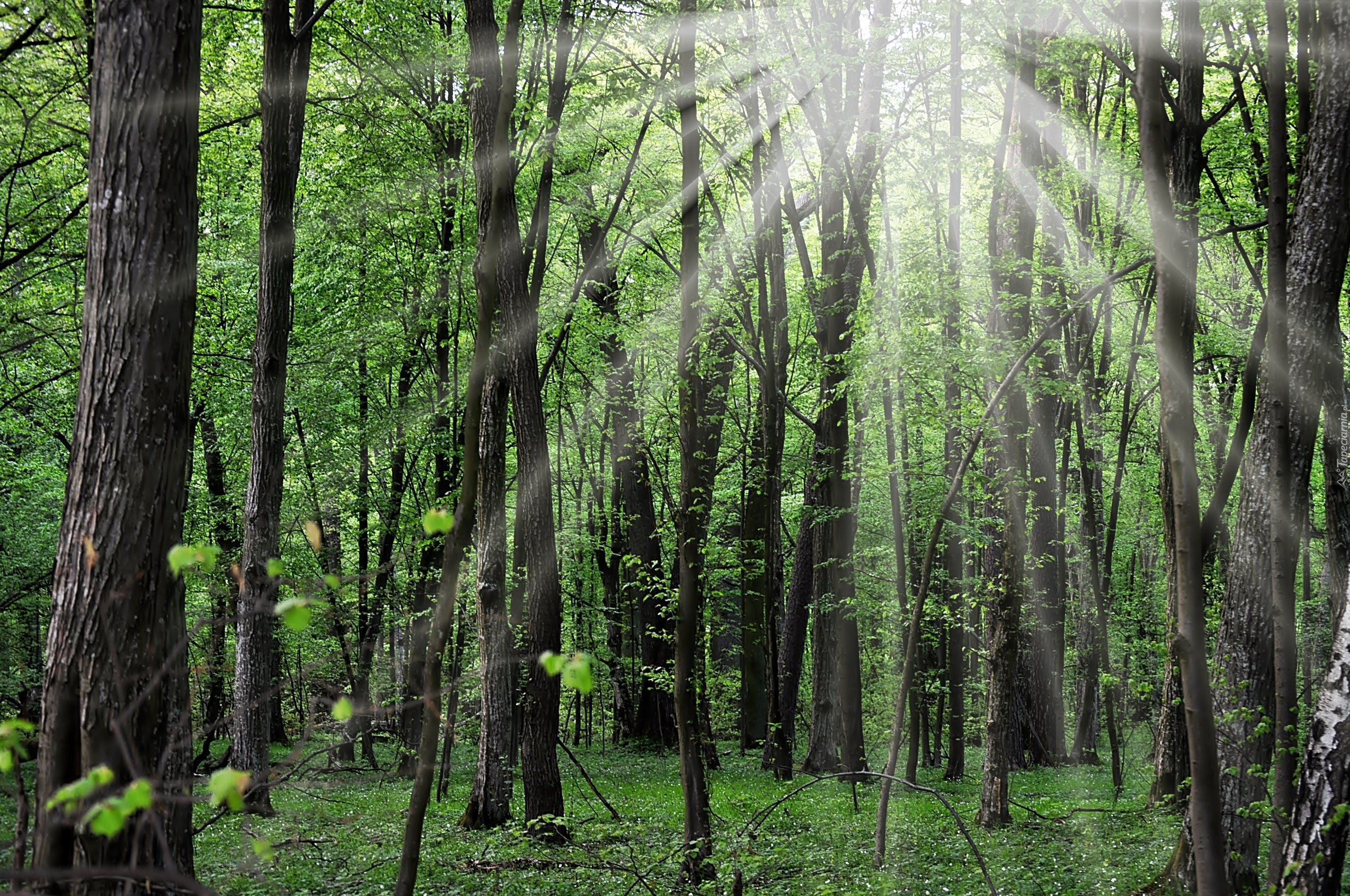 Edytor tapety: Las, Promienie Słońca, Kwiaty, Leśne