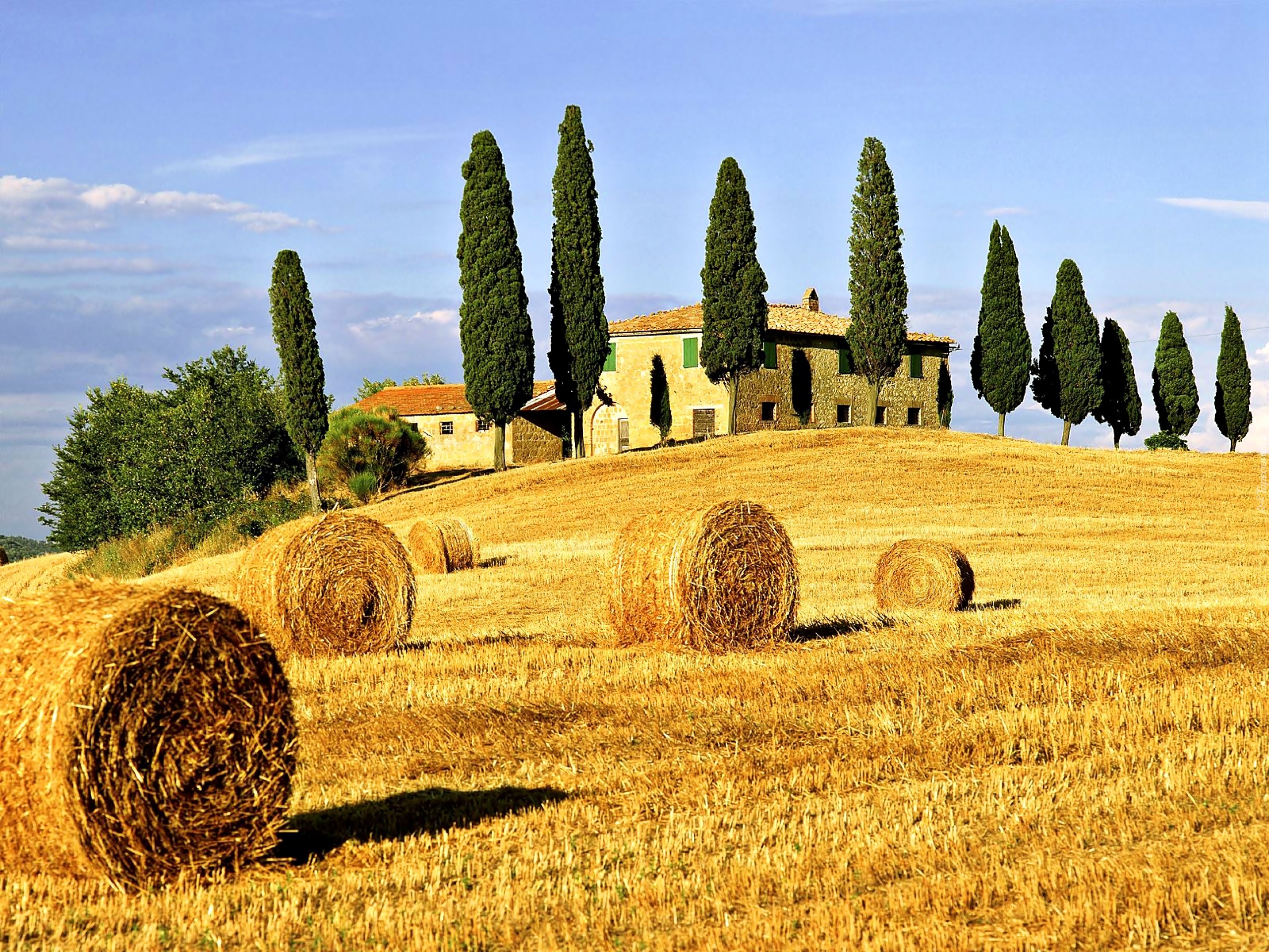 Edytor tapety: Dom, Pole, Cyprysy, Toskania