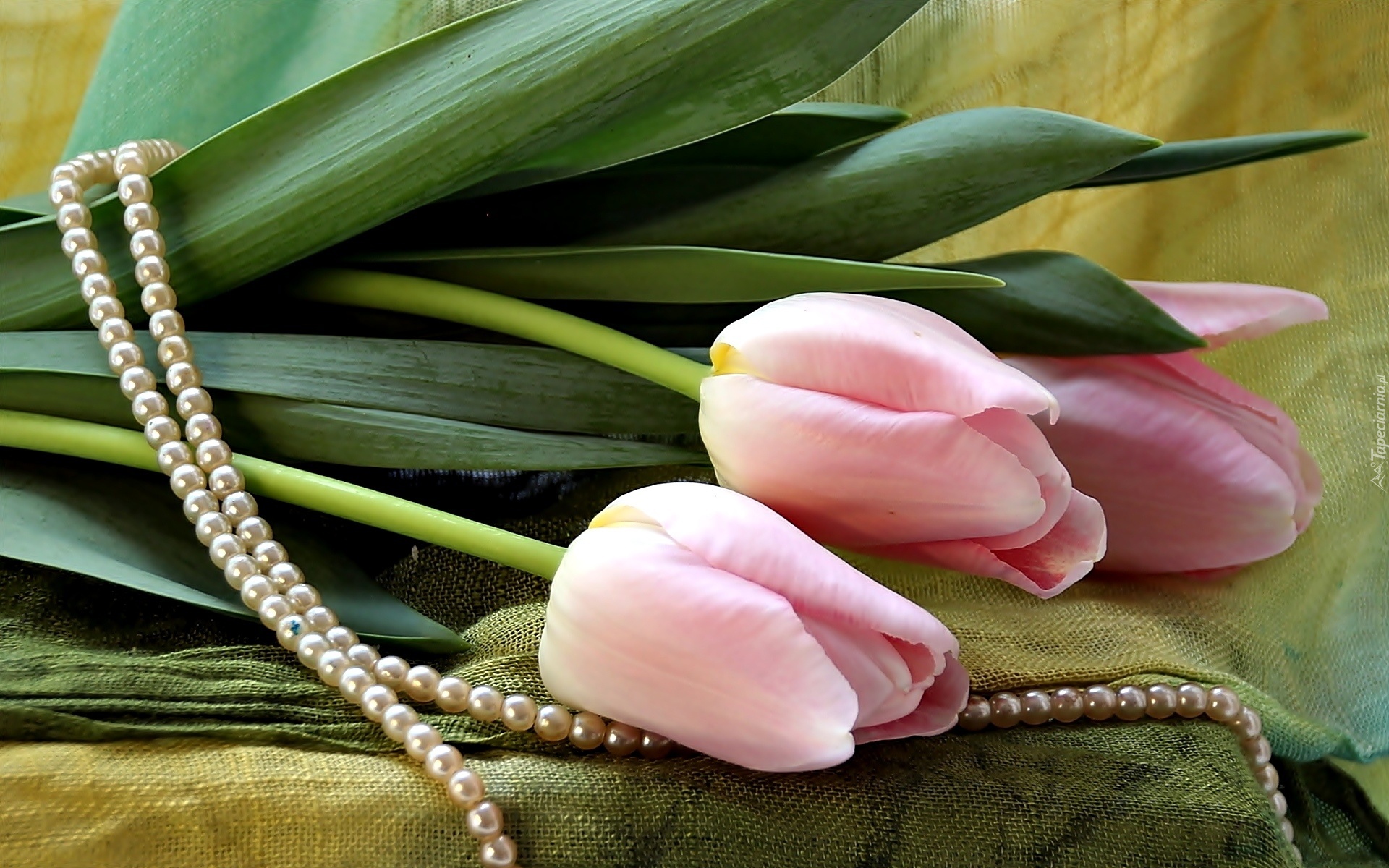 Edytor tapety: Różowe, Tulipany, Perły