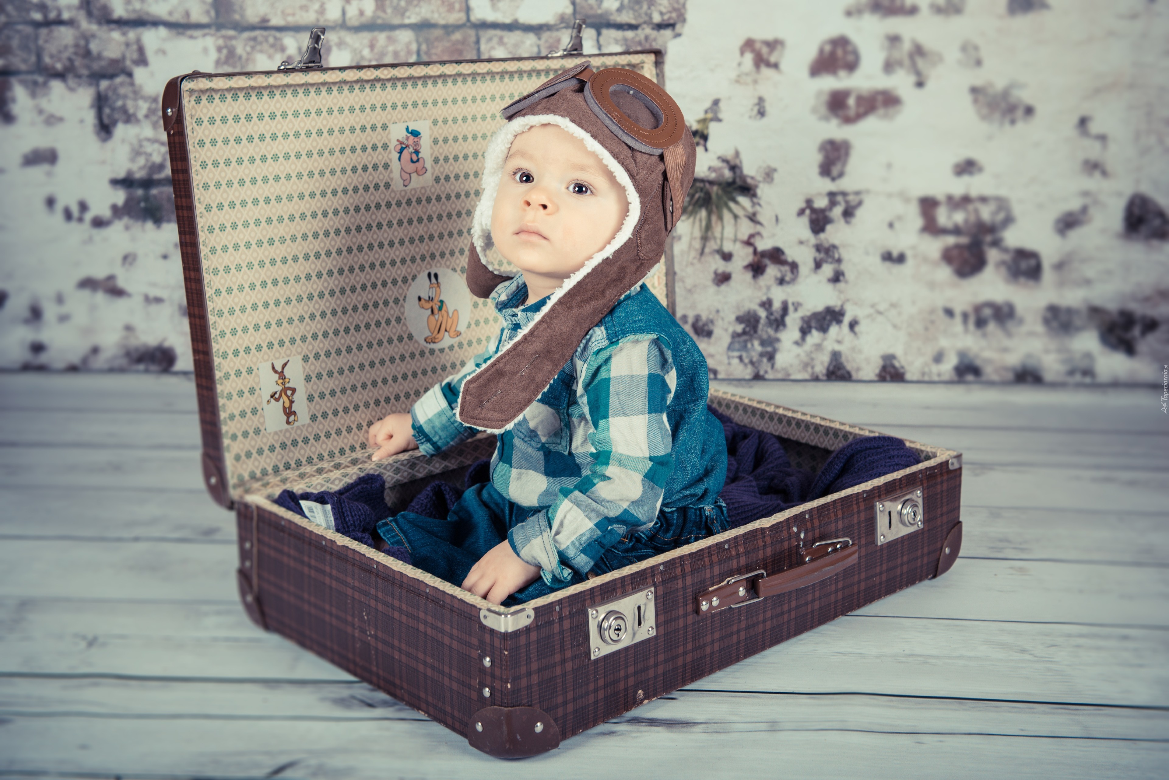 Edytor tapety: Dziecko, Walizka, Czapka
