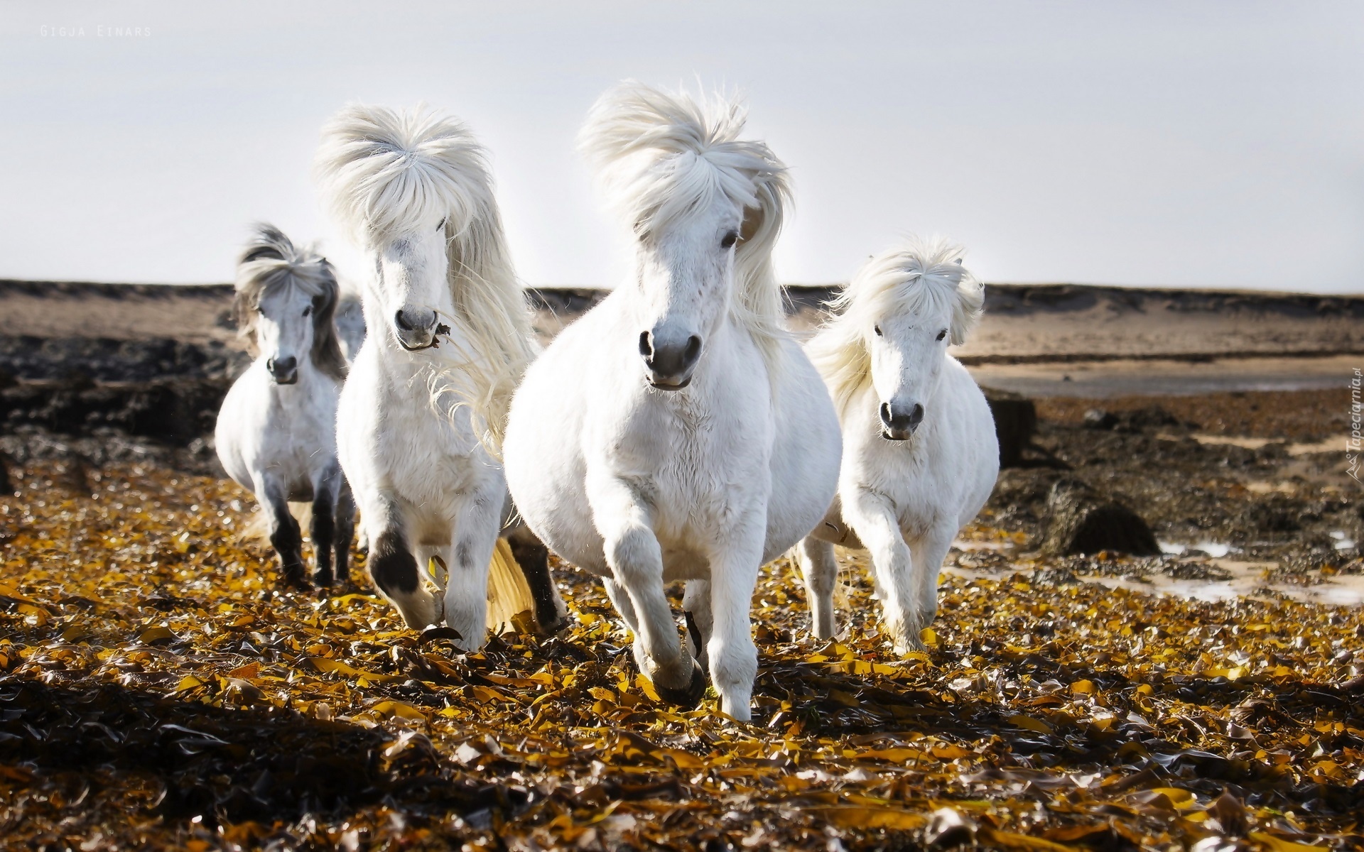 Edytor tapety: Białe Konie, Galop, Liście